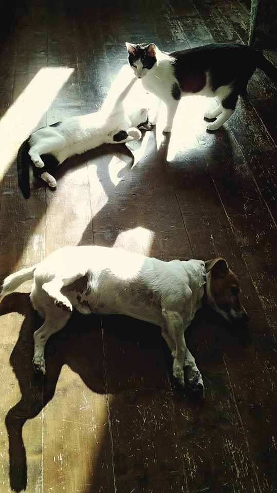 posíláme spoustu pozdravů. Máme se moc fajn, Hrášek a Abby – nazývaná také Bibi, protože když přede, je to zvuk jako z konvičky na kávu zvaná Bialetka nebo Ave Bibi, to protože její profil připomíná Caesara 🙂 jsou nerozlučná dvojka. Sedli si hned od prvního setkání. Jsme moc rádi, že jsou s námi. Abby je rošťanda, ale to klidný Hrášek někdy taky. Prostě supr partička i s naším raslíkem Flekem. Myslíme na vás všechny a držíme tlapky! Mějte se všichni moc krásně sluníčkově.