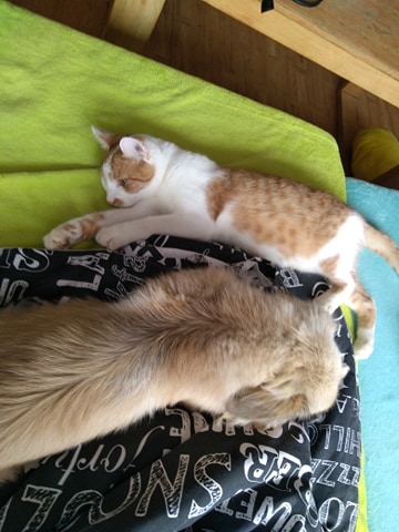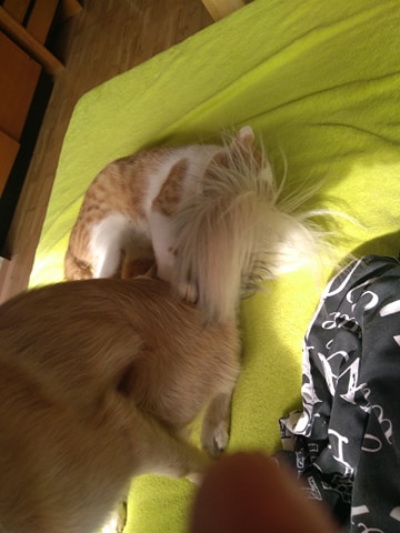 Tady náš Matýsek(Adonis) provokuje Baileyho 😁 Tomu to je nějak jedno a ignorujeho a necha si vše líbit 😁😁 kouše mu ocásek a do nožky 😁😁 někdy si zkusí mu drápkami dát přes čumák ale to mu vynadáme a ví že udělal něco špatně 😊