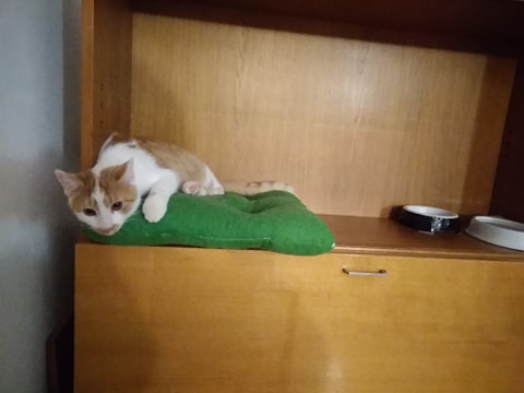 Tady má Matýsek svůj trůn i s jídlem a pitím 😊😊 naučil se tam spát a i jíst 😊 ale většinou nám večer přijde ležet k nožkám 😁😁😊
