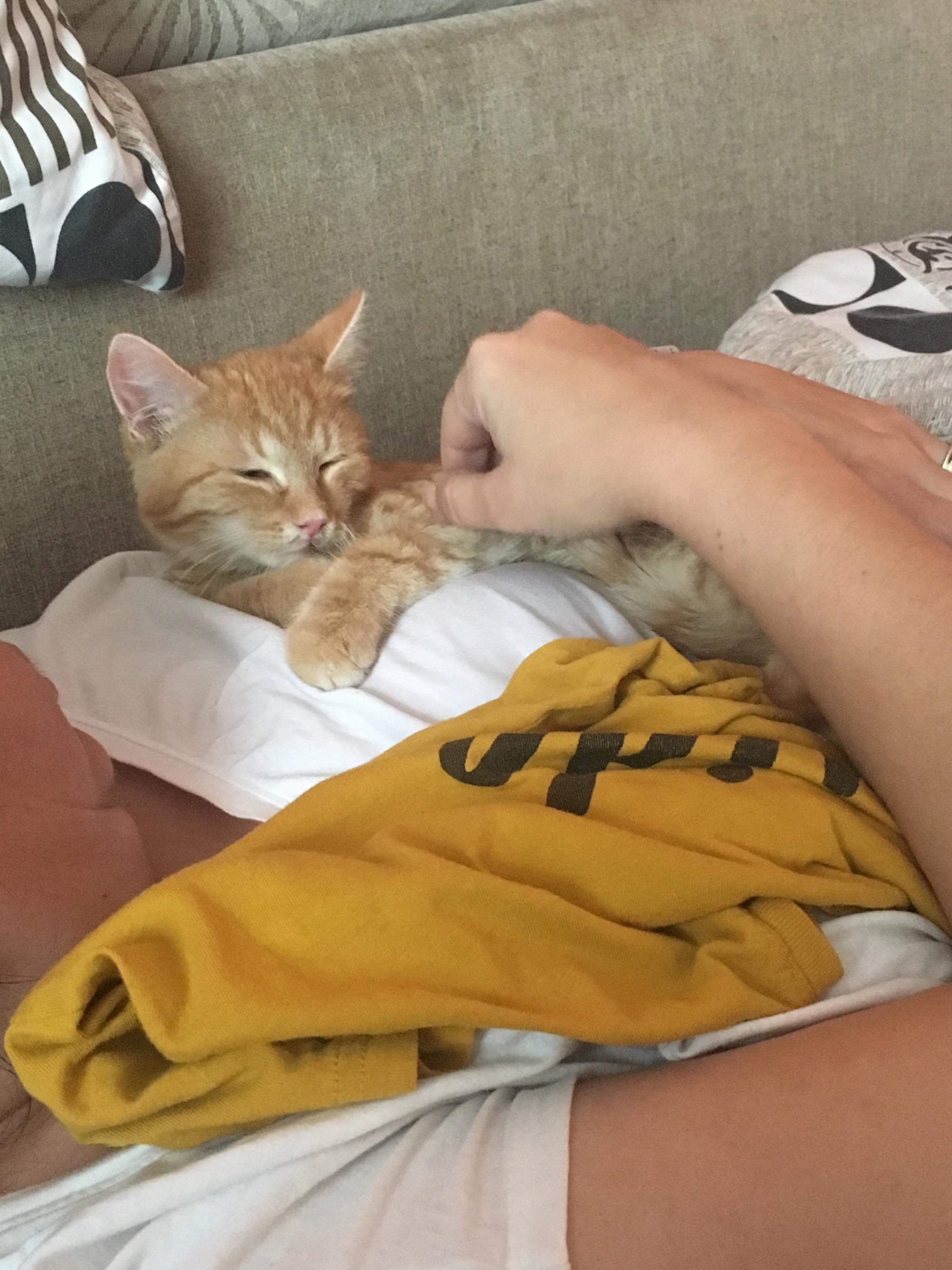 Dobrý den, První den byl boj, Alfréd byl vystrašený a stále se schovával. Dnes už se mazlí, vrní, ale stále je plachý. Věříme, že si u nás zvykne a za pár dnů pozná, že se nemá čeho bát.