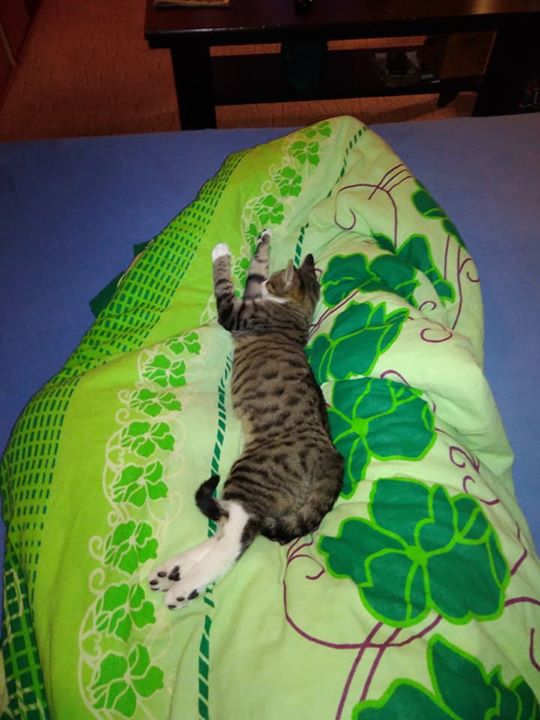 Dobrý den, pod peřinou už nespinká, v posteli ano ale spíš s Nelou. Posílám názornou ukázku. Jinak u veterináře už jsem byla. Kastraci domluvíme po léčbě očí,ma zánět v obou očích, dostali jsme protizanetlivou mast a už se mu to mnohem zlepšilo, neteče mu z oči už skoro vůbec. Průběžně Vám budu posílat další informace a fotky. Mějte se Vladka