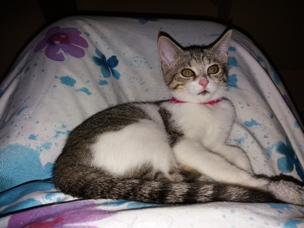 Milá teto Mílo, maminko Pipo a ostatní kočičáci a hafiny. Už sem se tu zabydlela, úspěšně okupuju celý byt i stůl, i když kvůli tomu mi maminka hubuje. Sem tu šťastná, což tatínkovi a mamince dokazuju každý den tak ve 4 ráno, když po nich v posteli běhám, je pravda, že někdy maminka dělá, že opravdu spí, tak ji kousnu do nosu, aby se jako vzbudila a věděla, že se chci mazlit, nebo si hrát. Já si tady vůbec pořád hraju, lítám prej jak drak, a i ten můj chlupatej brácha někdy neví co se mnou. Minule sem na něj tak skočila, že mi maminka hubovala, celýho sem ho porazila a maminka mu pak kontrolovala oko, že prej sem ho trefila, no nevim. Ale je pravda, že mě taky maminka kontroluje oči a i uši, dokonce mi minule stříhala drápky na předních tlapičkách, to se mi moc nelíbilo, ale zase sem pak dostala takový dobrůtky. Já vůbec ráda papám, takový ty sušený tvrdý kousky co jim říkaj granulky, mi moc nejedou, ale masíčko ňam, ňam. Teď mi koupili nějaký konzervy, prej Sokol Falco, ty jsou moc dobrý a občas mi maminka dá čerstvý masíčko, třeba kuřecí srdíčka jsou moc dobrý. Taky mi musel tatínek dodělat na ten můj lezeckej strom zábradlíčko, prej se moc vrtim, tak měl strach abych nespadla. Ten lidskej brácha je taky fajn, klidně mě nechá spát u něj na posteli a když hraje tablet, tak u něj ležím a hraju s ním. Ta lidská ségra je trochu pošuk, pořád lítá a leze po vejškách, maminka říká, že sme obě stejný. Jo a ta chlupatá koule, prej morče, má super klec, ale moc mě tam k ní nechtěj pouštět , protože prej taky potřebuje klid. Tak se tam všichni mějte hezky a ty teto Mílo taky odpočívej. Maminka posílá i pár fotek abyste věděli jak rostu.
