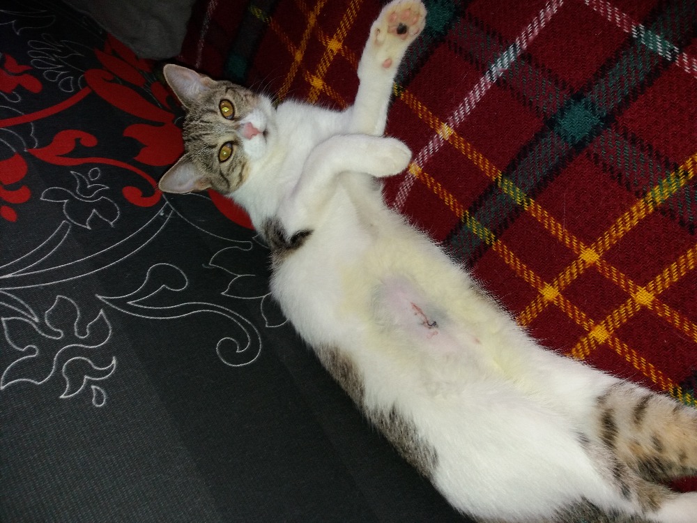 musím si stěžovat. Už mi to provedli. Normálně mě zradili. Věřili byste tomu?, já je mám tak ráda, a oni tohle. Nejdřív to vypadalo dobře, že už jsem si ty svý posluhy vychovala, protože mě normálně ještě v 10 večer dala maminka masíčko, co mám tak ráda. Jenomže pak mi sebrali granulky, a že prej musím mít hladovku. Ráno mi vůbec nedali najíst, ani když jsem na ně hladově koukala a seděla způsobně na místě kde mám vždy ráno plnou mističku. Tak aby věděli, roztrhala jsem pytel se stelivem a ty kamínky byli úplně po celý chodbě, to maminka koukala. Pak mě tatínek naložil do přepravky a zavezl mě tý paní doktorce a nechal mě tam. Chápete to?, normálně mě tam nechal. Pak mi paní doktorka něco píchla a já usnula a když jsem se vzbudila bylo mi špatně a bolelo mě bříško. Jako prej už ta kastrace. Ale aby si doma nemysleli, že jim to jen tak projde, vůbec se s nima nebavim a když mě dovezli domu, pěkně sem maminku prohnala. Počůrala jsem doma úplně všechno co jsem mohla, maminka za mou furt chodila s takovýma podložkama, ale já stejně počůrala všechny 3 pelíšky a deku a i polštář co mám na spaní. A pak jsem se v noci schovávala a maminka mě hledala. To maj za to.