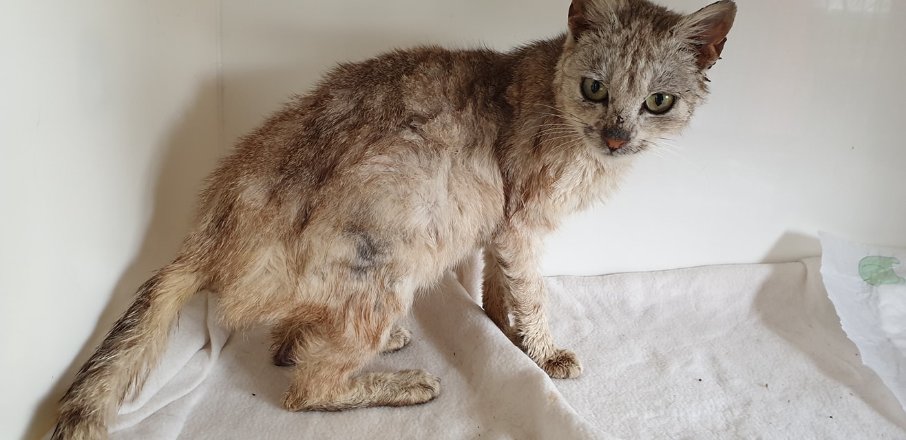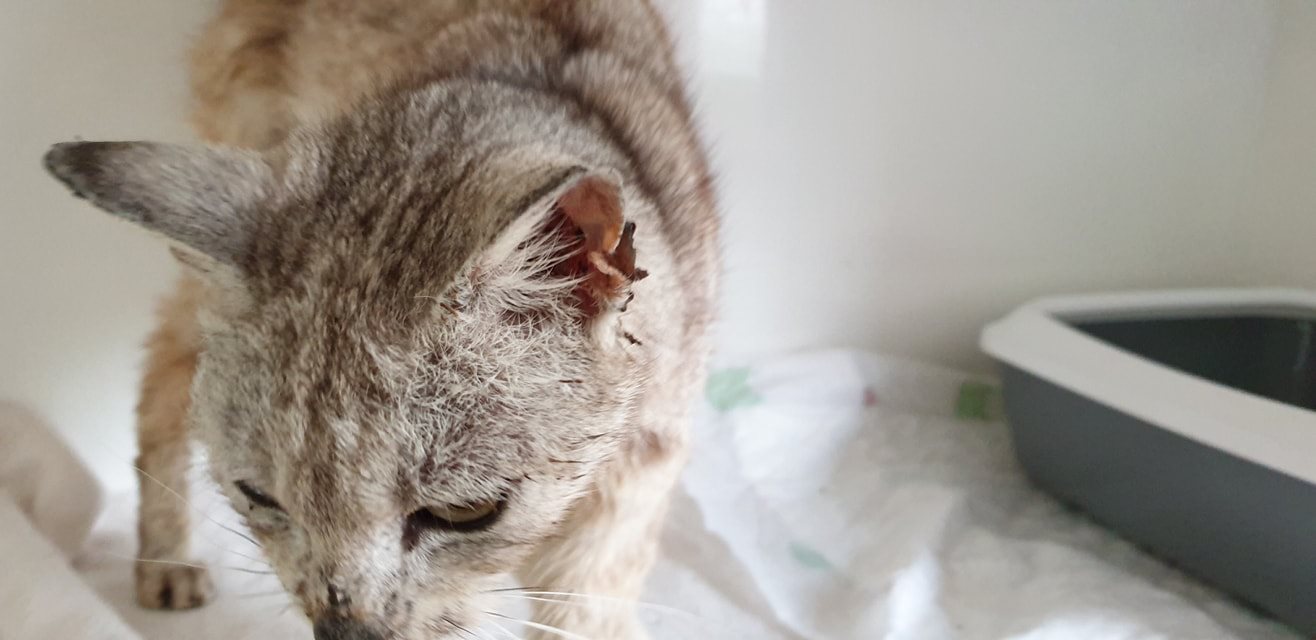 Teď byl odčerven, odblesen, zbaven klíšťat,…. Až to jeho stav dovolí, čeká ho kastrace.