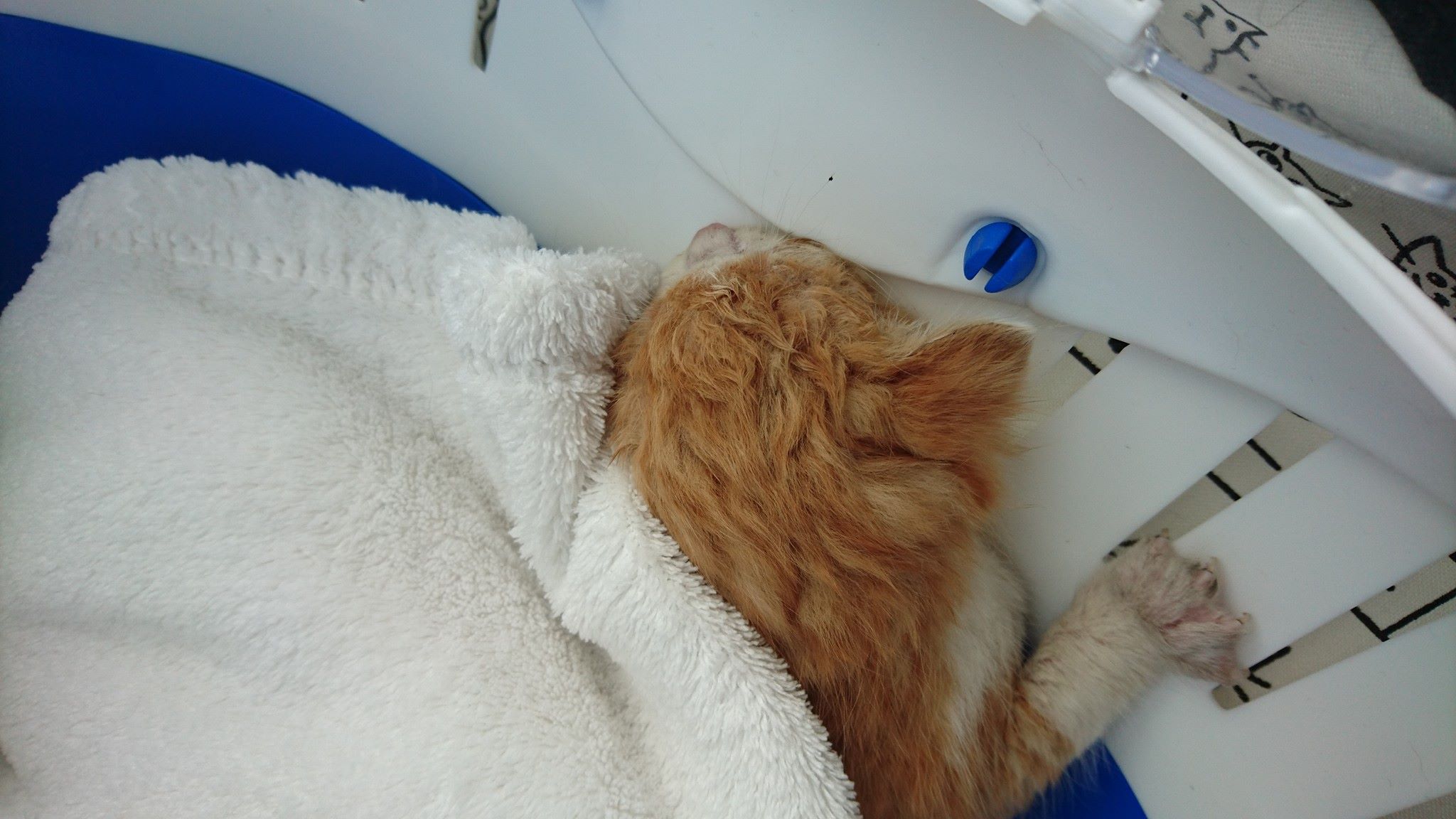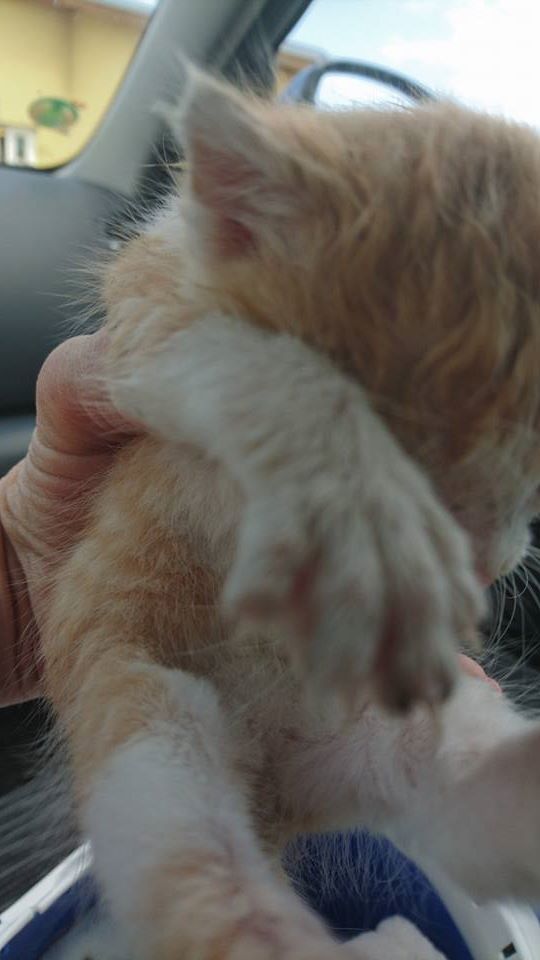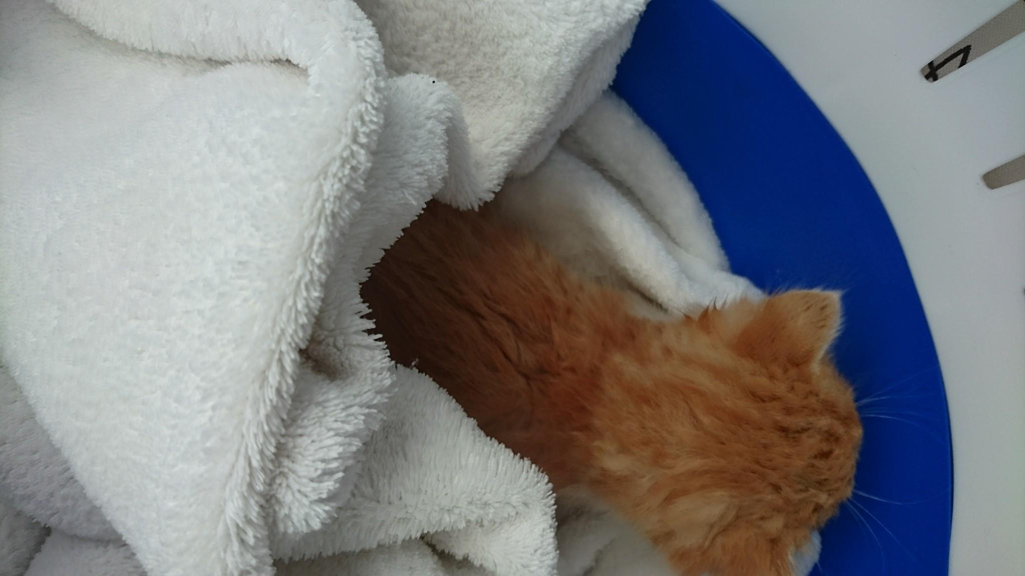 Převzetí malého koťátka nalezeného ve stavebninách v Roudnici n.L. Je to chlapeček, necelé tři týdny starý, promočený, úplně studený s teplotou 35,2 st.C. Byl převezen do depozita k Janě.
