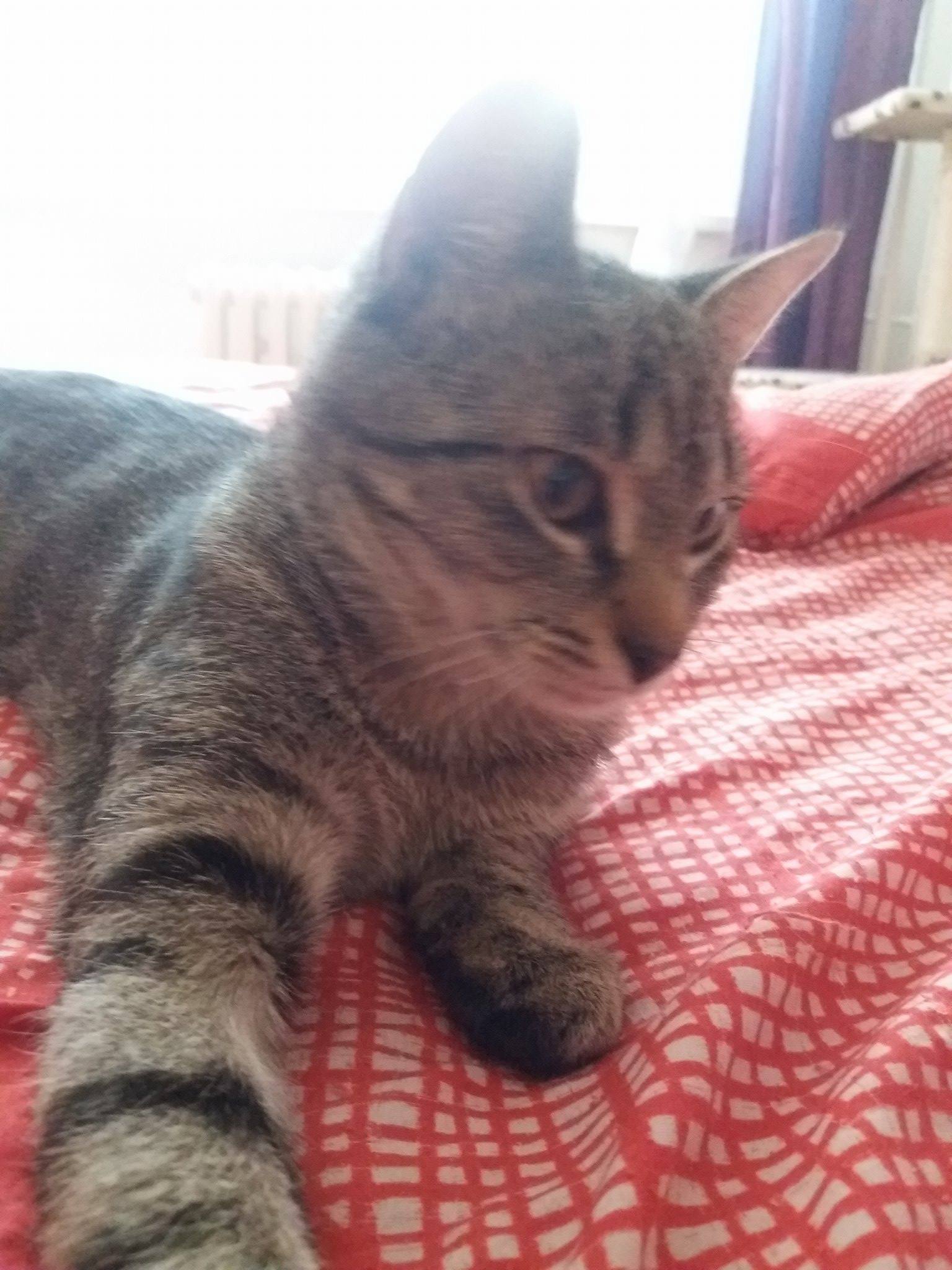 Mourovatý kocourek odchycený ve věku asi šesti týdnů v Rohatcích, spolu se svými sourozenci Ibizou, Kyprem a Malorkou. Jejich plachá matka byla po kastraci vrácena zpět do lokality.