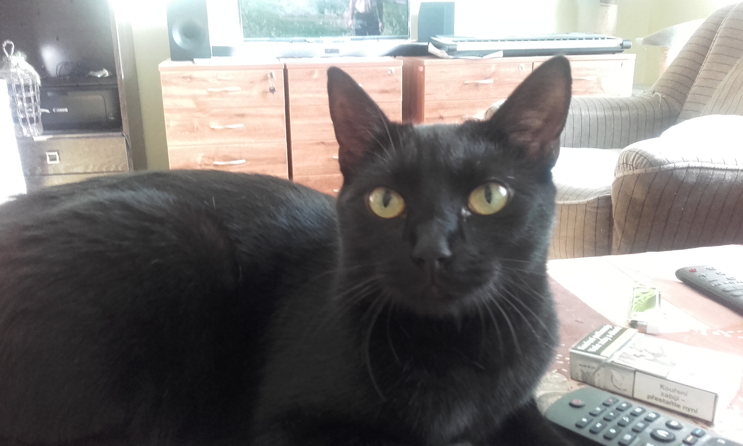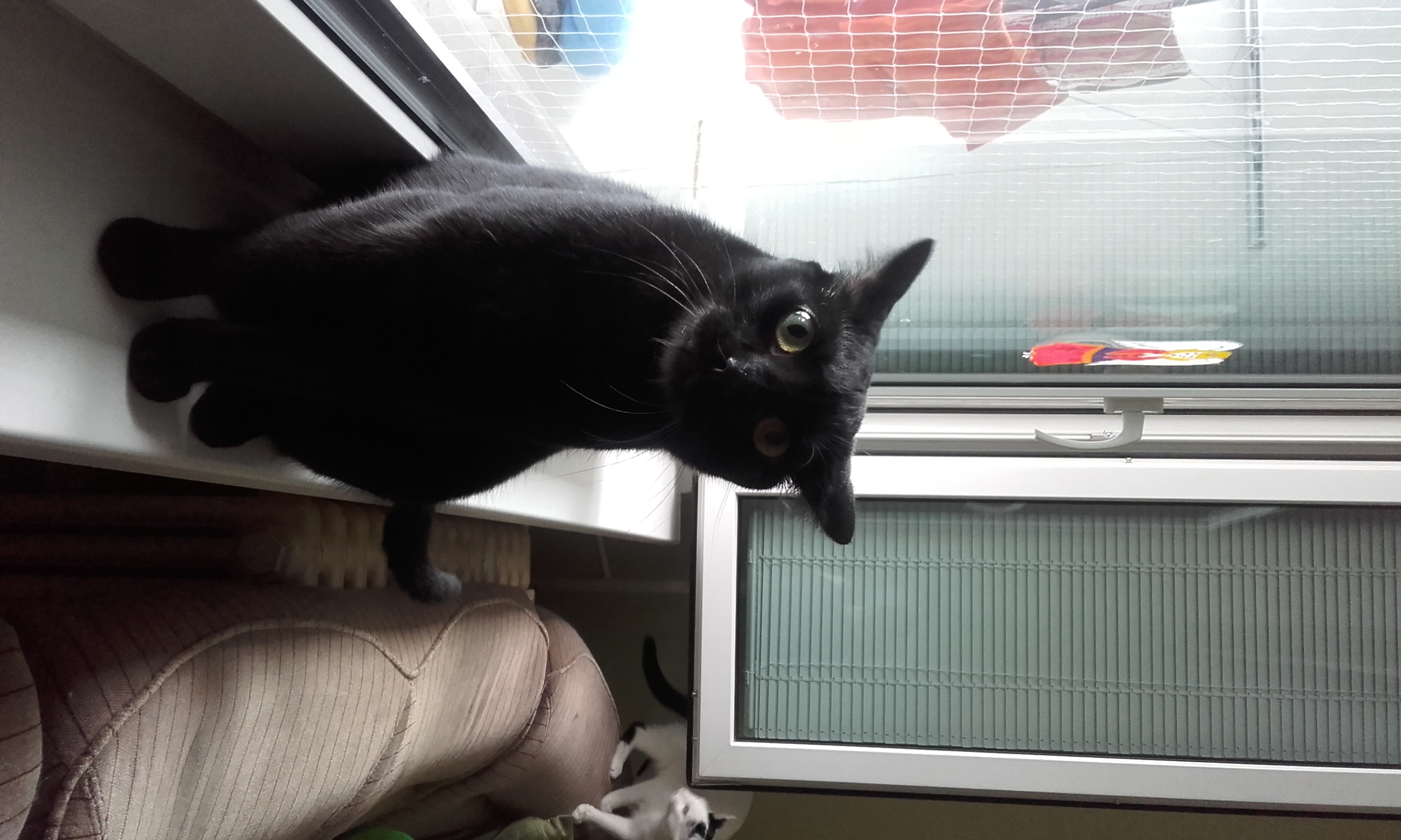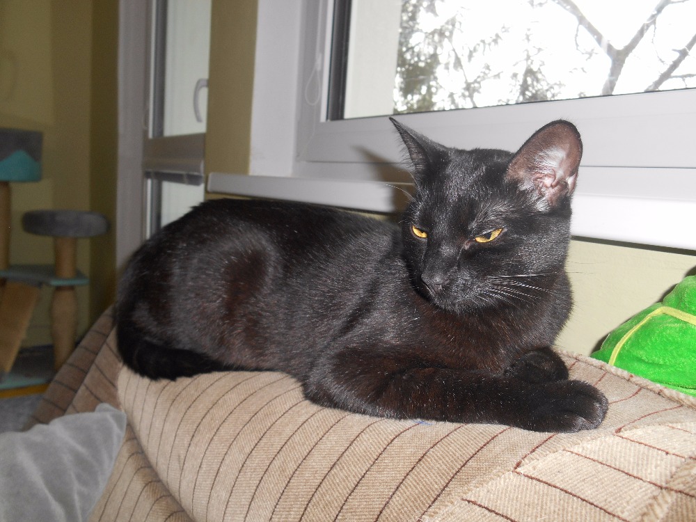 Teď je období všelijakého hmyzu, tak tu máme na denním pořádku salta při lovu much a mušek. Táta mi konečně pomohl zasíťovat okno, takže můžeme větrat o sto šest a obě čičiny valí bulvy na ptáky, protože máme okno ve výši korun stromů.