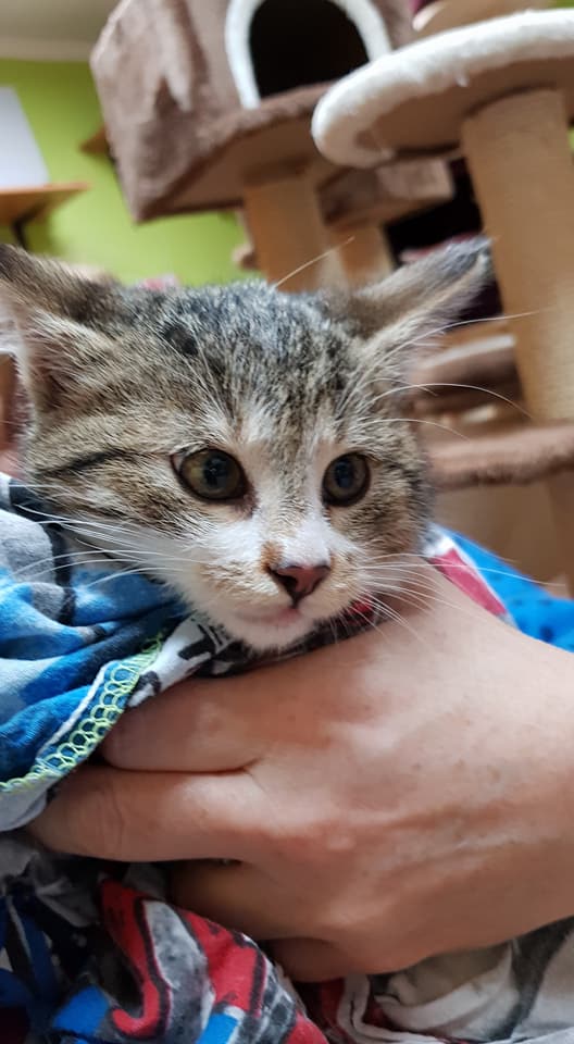 V obci Hrobce odchycené další kotě maminky Pupinky, holčička Bucinka, sestřička Pupíčka. Bucinka není až tak plachá, je moc krásná a vypadá zdravě. Snad bude brzy mazlíček jako Pupíček. Bucinka se narodila cca 20.8.2017.