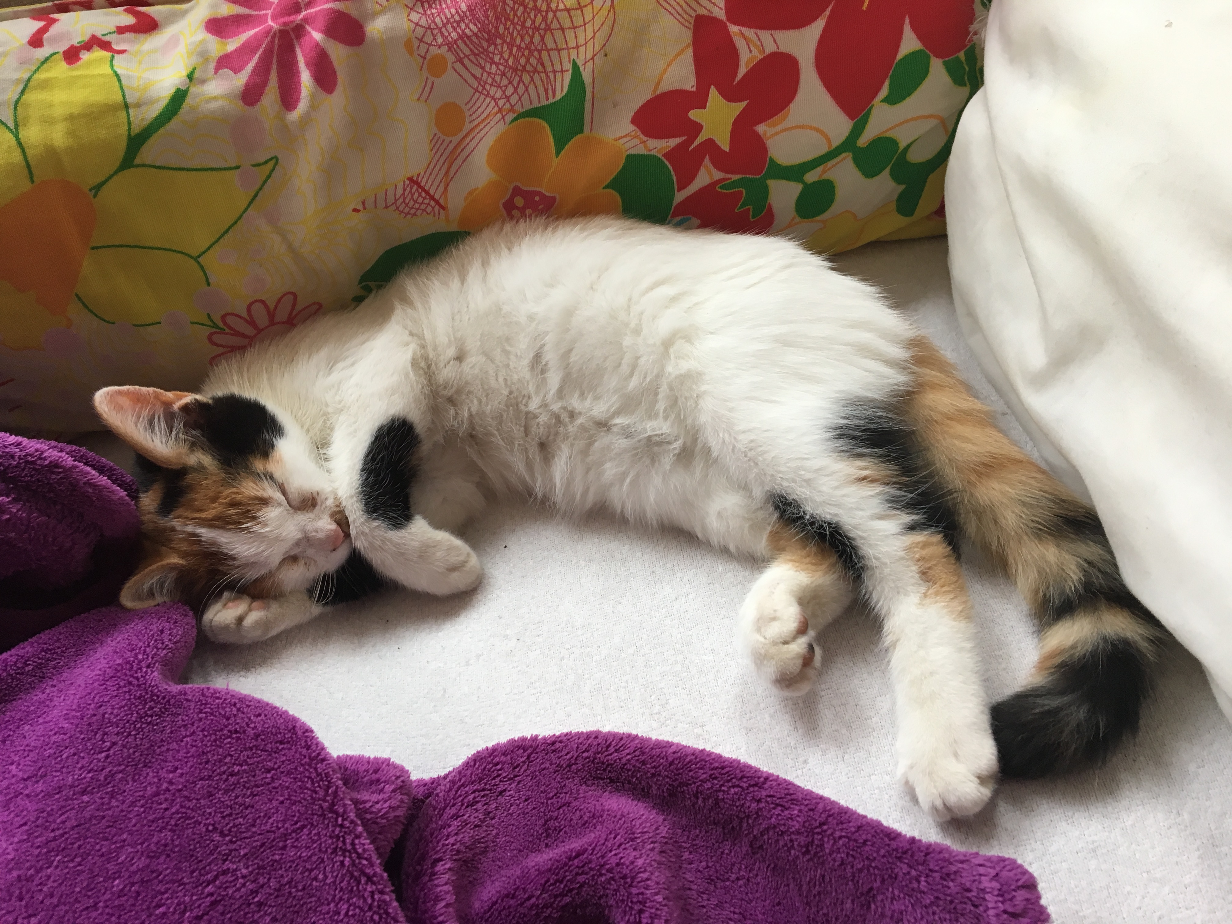 Prosím naléhavě hledáme domov pro 2 čistotná májová (asi 5 měsíců stará) koťátka. Tříbarevná kočička, přeborník ve vrnění a předení, chlupatá léčitelka. Kočičácký chlapeček, krásný kocourek, velice mazlivý, přítulný a vděčný společník. Jsou zvyklí doma, chodí na písek, i venku, kamarádští i k jiným zvířátkům. Jsou odčervená, očkovaná zatím ne. Nacházejí se na Praze 4, mohu je i dovézt autem.