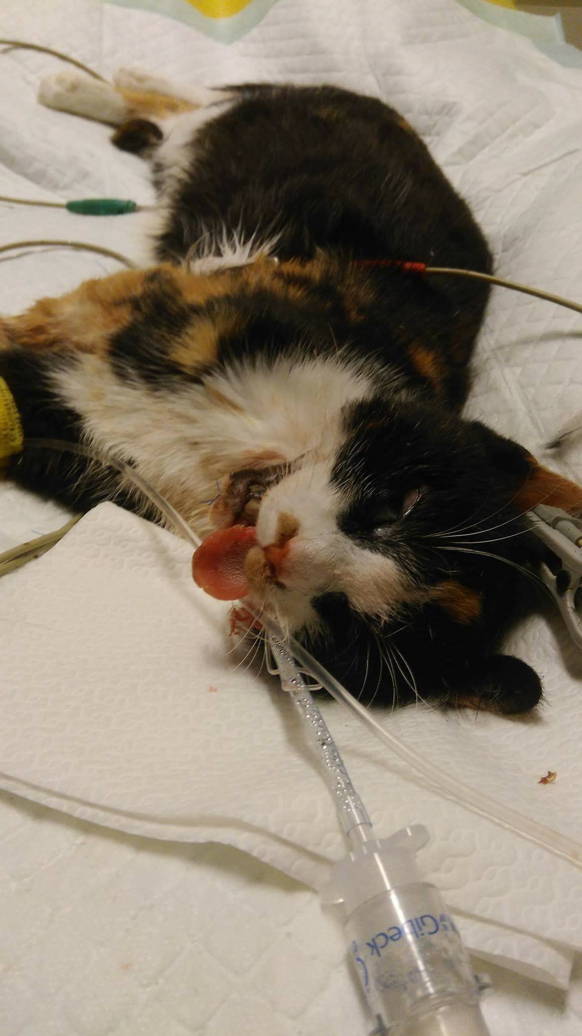 Byšinka bohužel přestala nakonec jíst i pít a muselo se přistoupit na krmení sondou.