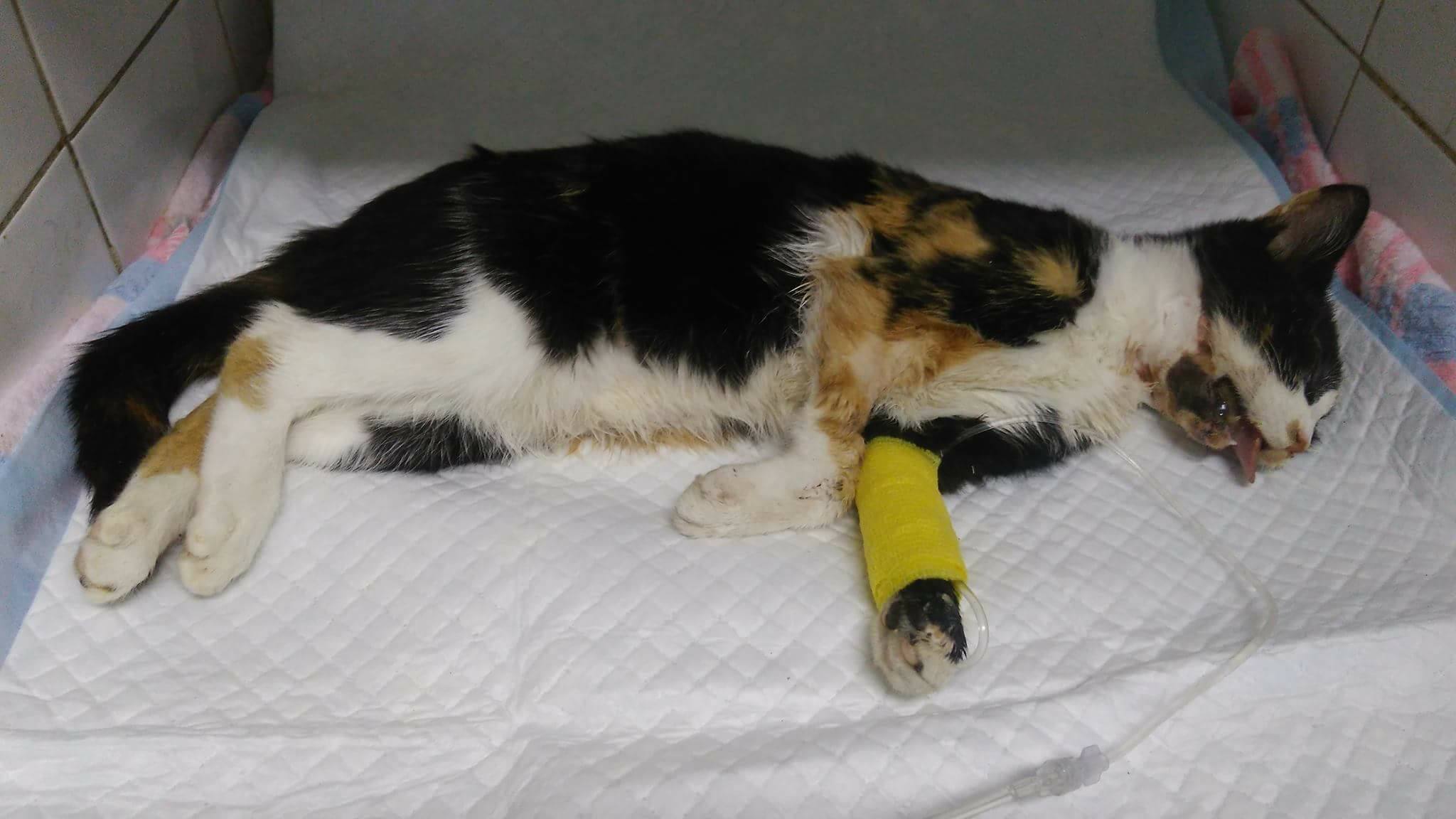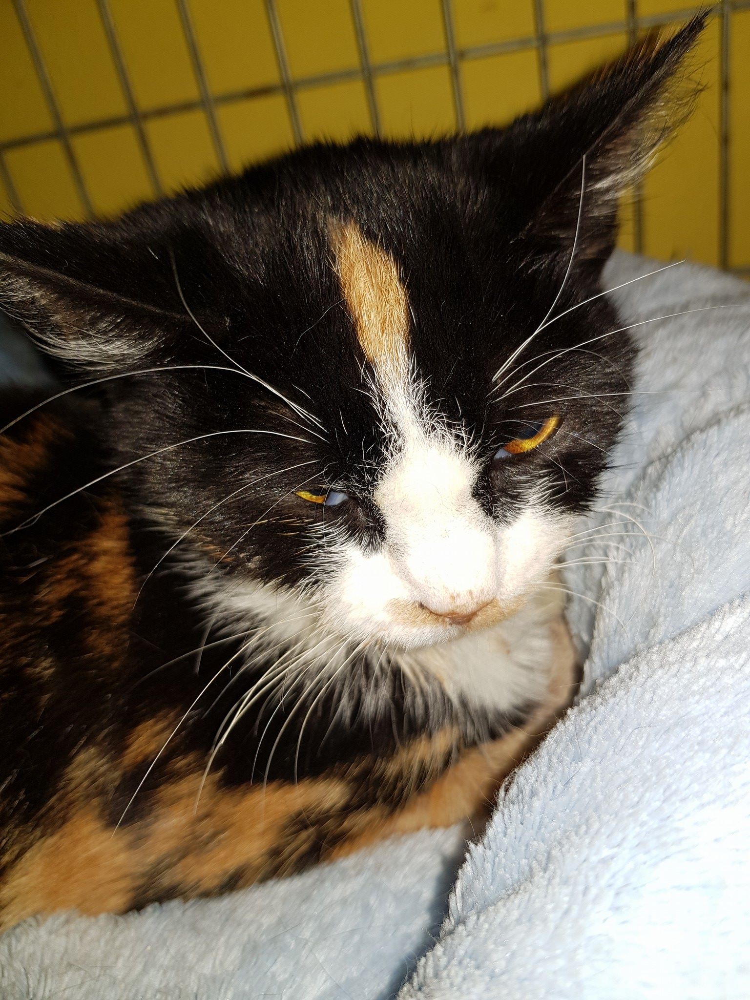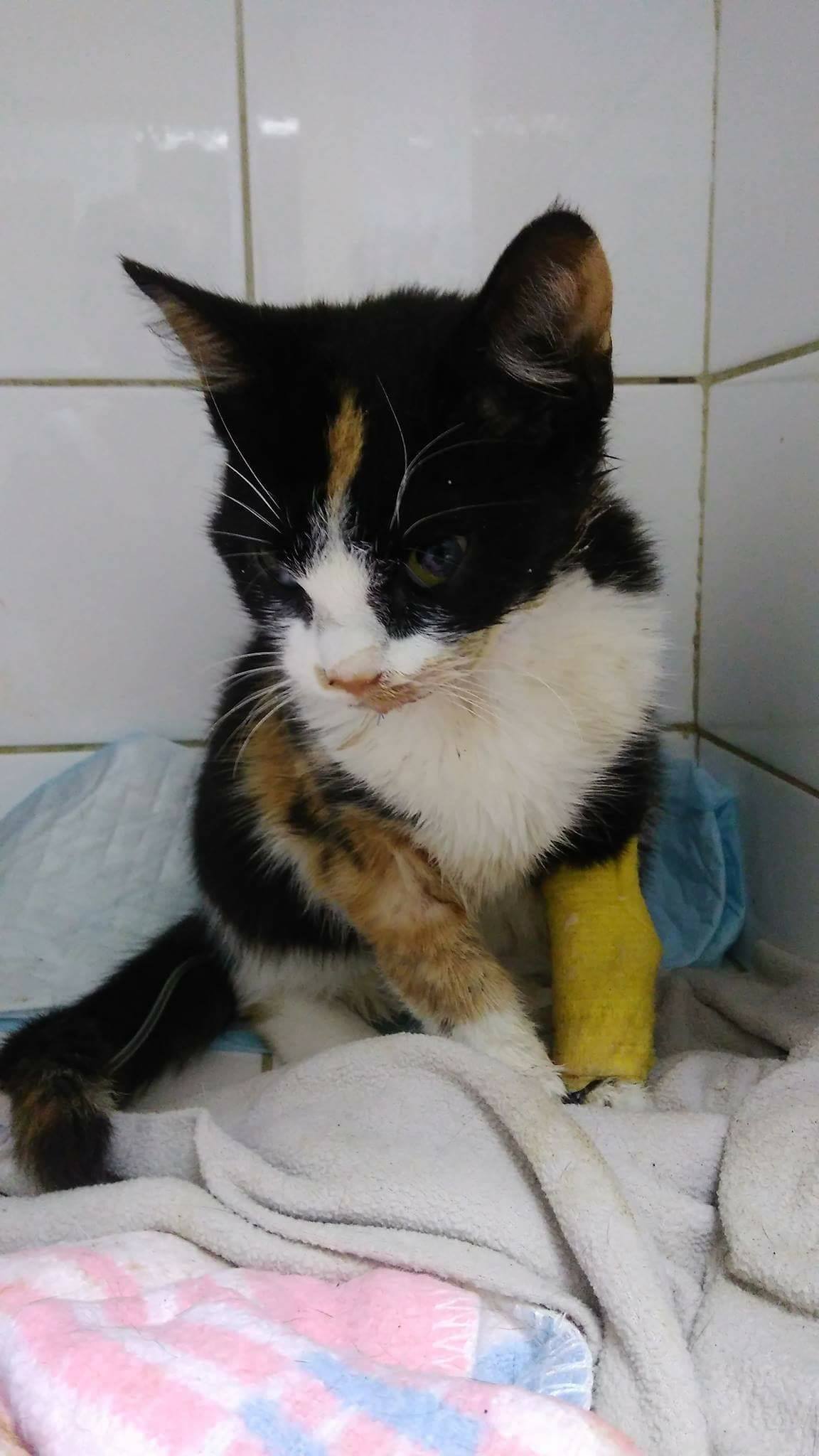 Tříbarevná kočička, kterou přinesla na veterinu u Maradů její nálezkyně. Kočička byla po těžké autonehodě, která zapříčinila poranění hlavy. Když byla kočička stabilizována, přistoupilo se k operaci přeražené čelisti. Rekonvalescence není lehká. Pusinka jí hodně bolí, nemůže bolestí jíst, pije jen mlíčko. Zákrok v pusince byl veliký, za šest týdnů bude Byšince vyndána kovová opora z čelisti. Doufejme, že to Byšinka ustojí. Je to mladá a krásná kočička.
