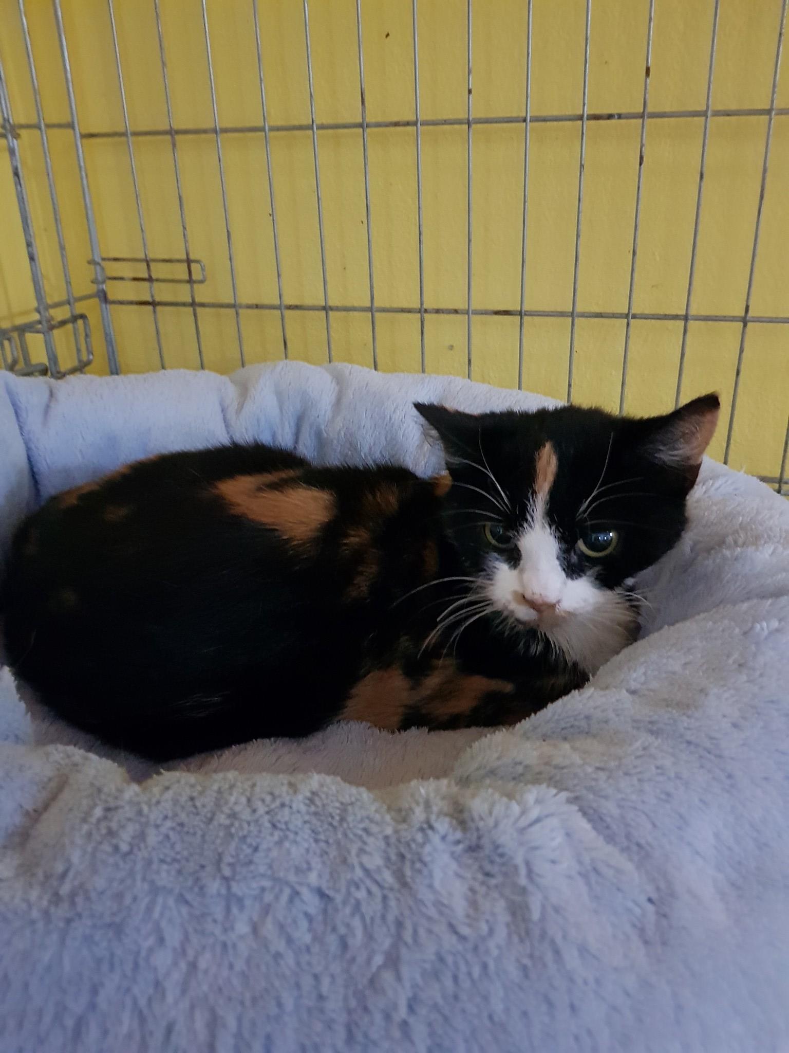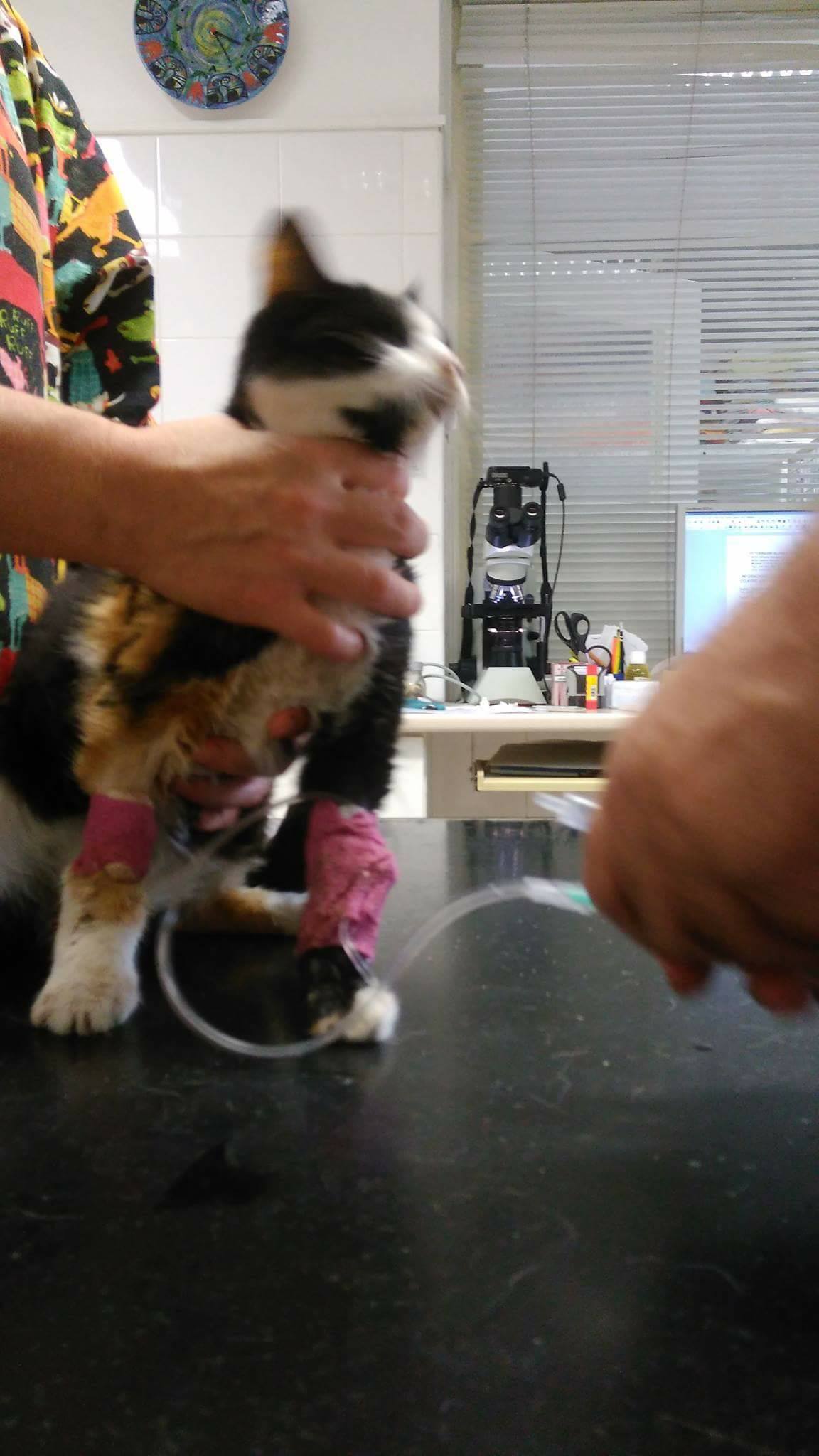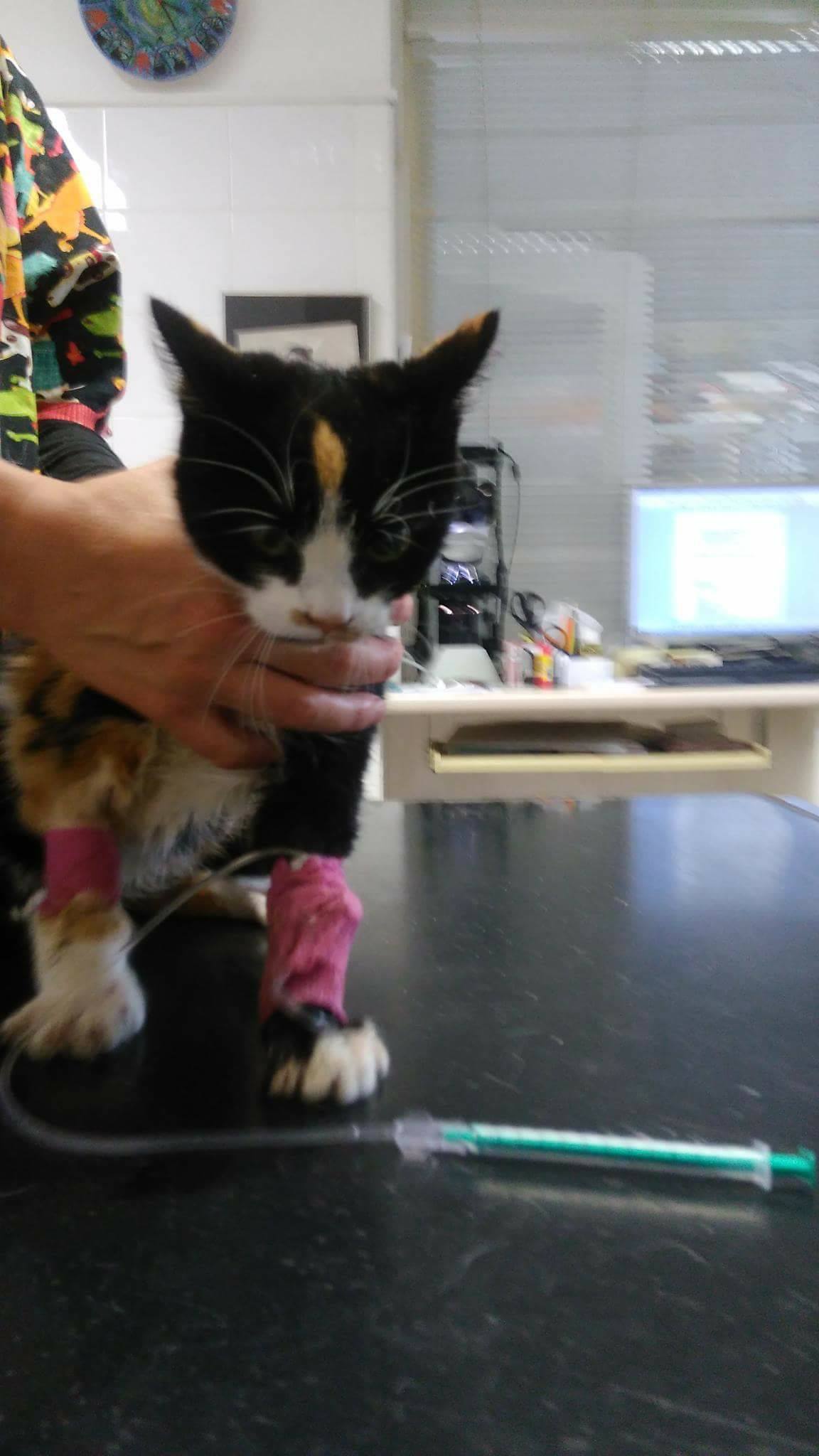 Tříbarevná kočička, kterou přinesla na veterinu u Maradů její nálezkyně. Kočička byla po těžké autonehodě, která zapříčinila poranění hlavy. Když byla kočička stabilizována, přistoupilo se k operaci přeražené čelisti. Rekonvalescence není lehká. Pusinka jí hodně bolí, nemůže bolestí jíst, pije jen mlíčko. Zákrok v pusince byl veliký, za šest týdnů bude Byšince vyndána kovová opora z čelisti. Doufejme, že to Byšinka ustojí. Je to mladá a krásná kočička.