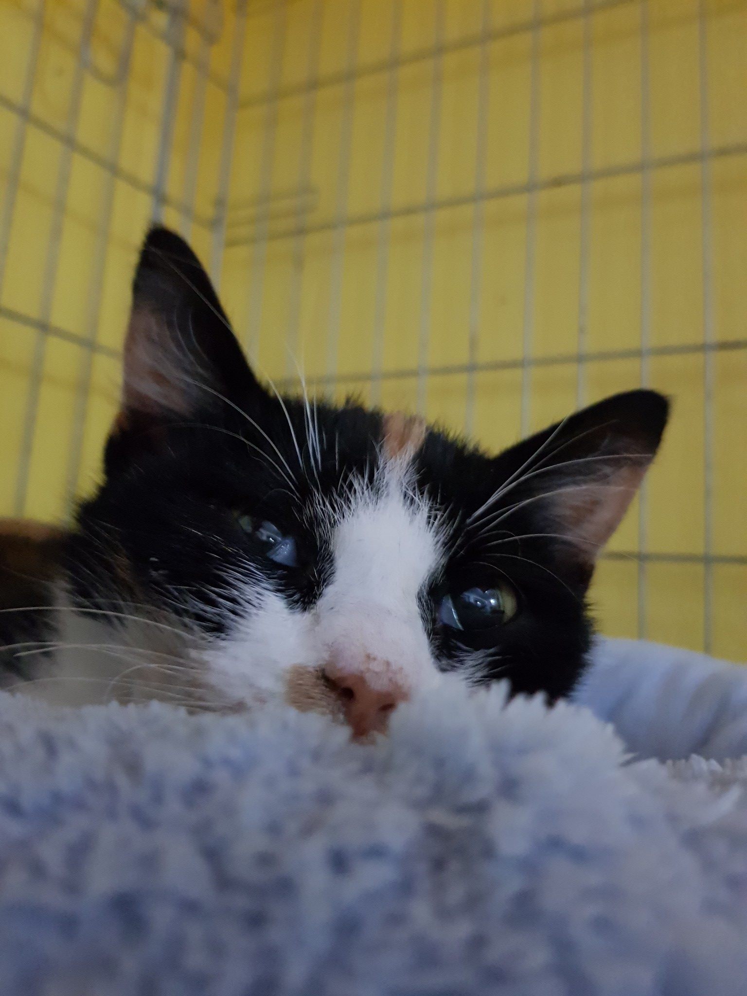 Aktuální info: Byšinka je již zcela zdravá. Je to mladá a hravá kočička. Velký zájem o mazlení sice neprojevuje, což se ani nedivím po léčbě, kterou musela absolvovat. Plachá však vůbec není. V novém domově bude jistě mazlíčkem. Asi by ráda ještě jednoho kočičího kámoše na dovádění.
