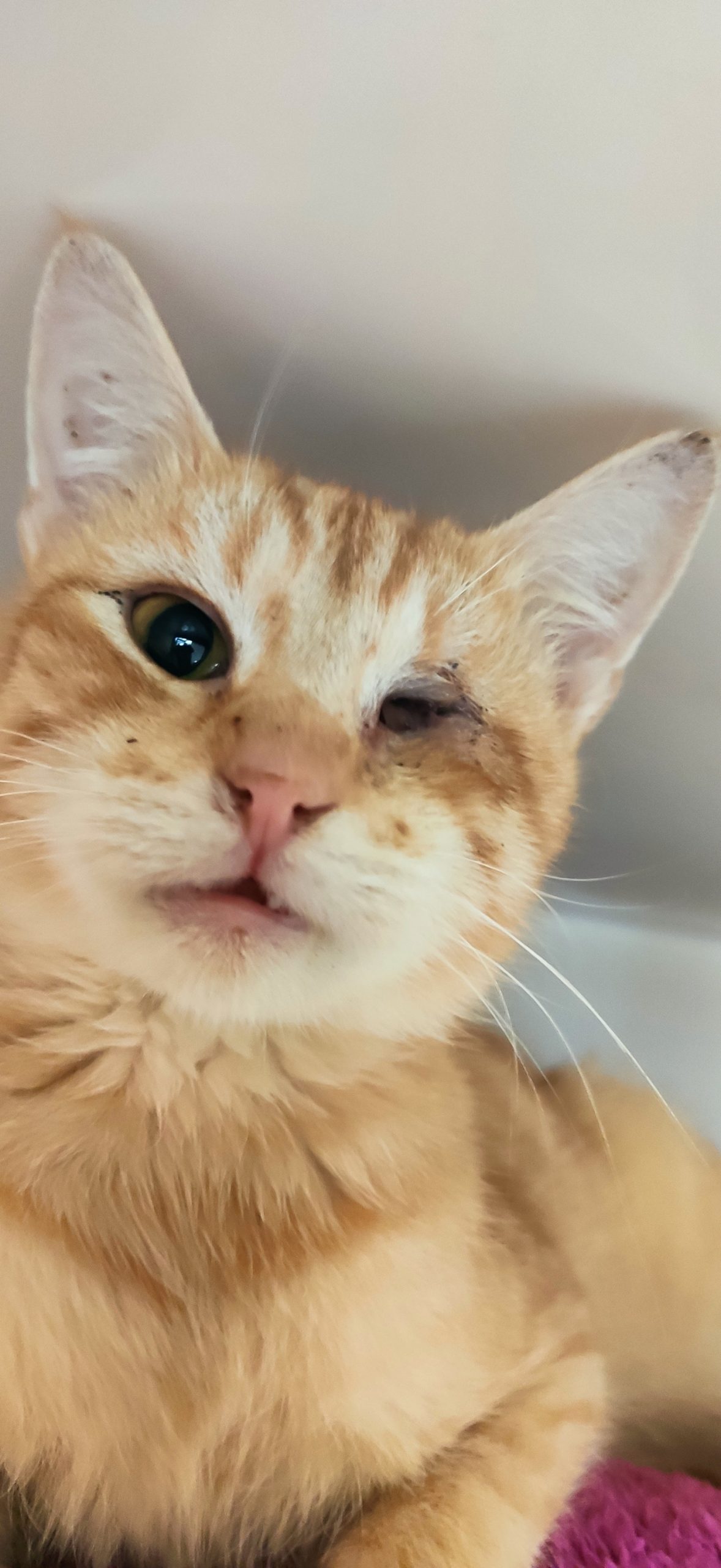 ‼️ZHRUBA DVOULETÝ KOCOUREK DIESEL JE HODNĚ PŘÍTULNÝ, MILÝ, KONTAKTNÍ. Z NOSÁNKU MU UŽ NETEČE, OČIČKO LÉČÍME, BUDE VŠAK MÍT TRVALÝ DEFEKT‼️ Příspěvek z Facebooku