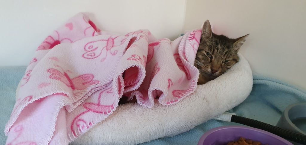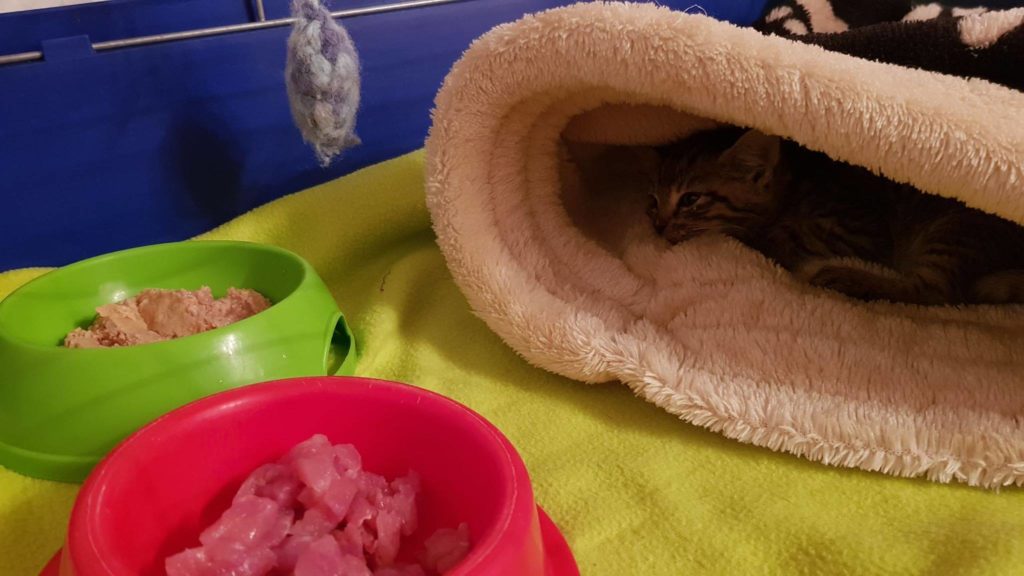 MANDARINKA 🍊 🔸… si po včerejším příjmu užívá tepla a jídla. Dnes si i chvíli hrála v kleci s hračkou. Zatím je však slabá, stále spí, moc se nedokáže postavit a vydržet na zadních nohou. Kuli zdravotnímu stavu nemohla být ...