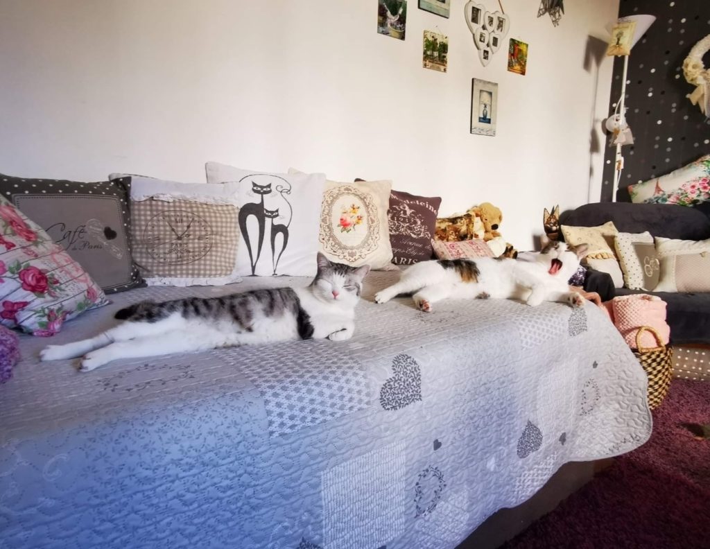 KOČIČKA ROZÁRKA ❤️ (z Kočičího domova Sluníčko z.s) a její parťák DAMIÁN 🐱 🔸 Maji i vlastní stránky:https://www.facebook.com/rozarka.kockova.7 ▪️… prý: „Prodej koček. Vyvolávací cena – sto myší“ … píše jejich maminka 😂. Příspěvek z Facebooku