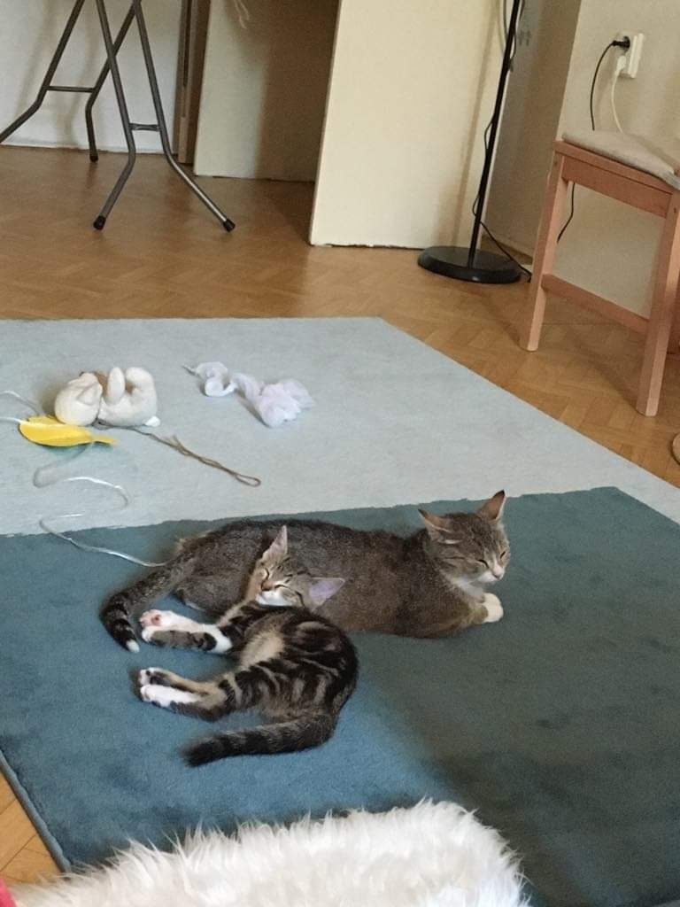 VIOLKA A KŘIŠŤÁLEK z domova 👍♥️ ▪️Hlásíme ze kocicky se mají dobre .. Violka i Kristalek se seznamují s domovem a už se i mazli.. Petra ▪️Máme se dobre🙂Violka a Kristalek Příspěvek z Facebooku