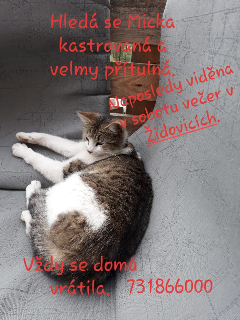 Hledá se velmi přítulná Micka. Prosím o sdílení. Micka může jak ven tak domů . Od sobotního večera se neukázala. Příspěvek z Facebooku