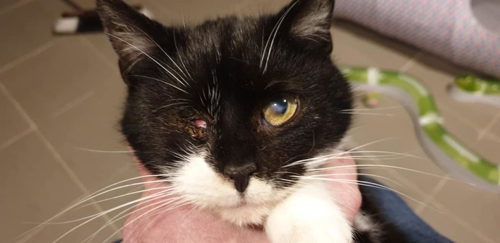 A největším mazlikem ❤️ je kocourek s poškozeným okem 😪. O oko přišel, jamka je prázdná. Na klinice mu bude zřejmě vyčištěna a zašitá. Příspěvek z Facebooku