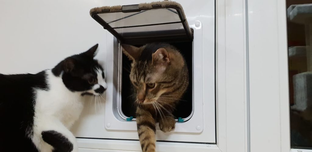 🐱 JA JDU DOVNITŘ A TY VEN! 🐈 NE JÁ JDU VEN A PAK TY DOVNITŘ!🐱 TO SE ASI POPEREME?🐈 ASI JO! Udviřek do voliery je zkrátka frmol 😻. Příspěvek z Facebooku
