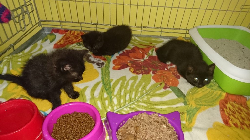 Nová koťátka z pneuservisu v Krabčicích. Plakaly celý den pod pneumatikami. Černé kotě s bílým je holčička Pneuška a mourovaté kotě je chlapeček Servík. Je jim asi dva a půl týdne, byla velice hladová, hledají maminku a cecík, zabořily nos ...