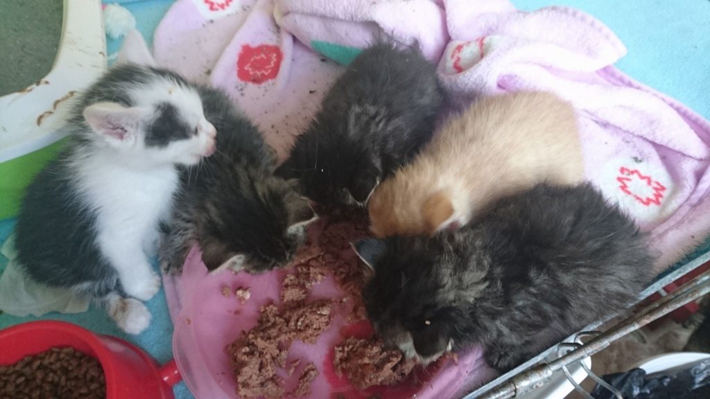 Našla je tam naše příznivkyně, která bydlí nedaleko Sluníčka a ve Velvarech pracuje. Koťátka jsou zhruba čtyřtýdenní a v příšerném stavu. Mám obavu, že tříbarevná kočička přijde o očička. Mají těžkou rýmu, sotva dýchají, nejedí, nenechají se ani pořádně nakrmit. ...