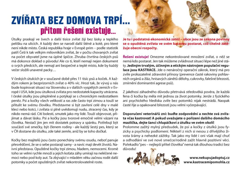 Podívejte, jaký super článek nám vyšel v časopise Ahoj Rodino🙂 Přesně tyhle kroky jsou v osvětě veřejnosti ohledně pomoci bezprizorním zvířatům zásadní. Zeptejte se, prosím, na vašem úřadě – osvětové texty můžeme poskytnout k otištění i do vašich obecních periodik. ...