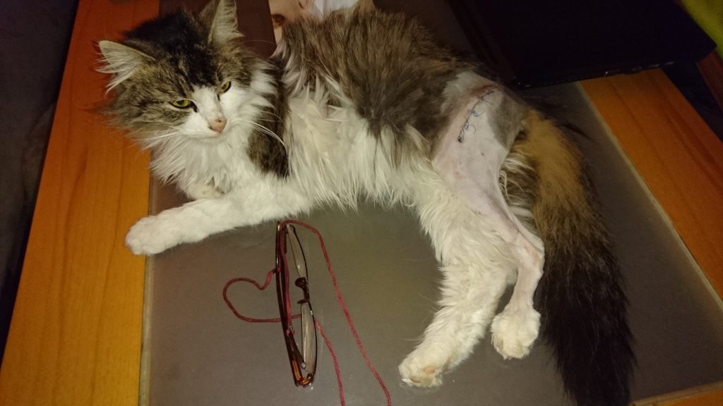 V neděli večer jsme si přivezli z nemocnice kočičku Ďurišku. Je to velice statečná kočička. Viděla jsem snímky zlomeniny, zlomená stehenní kost, od zlomeniny držela nožička jen na kůži. Byla to zlomenina tři až čtyři týdny stará, kočička hodně trpěla. ...