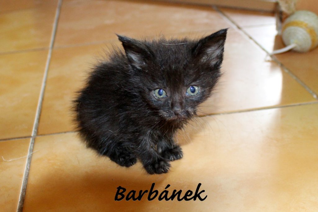 Černý kocourek, kterého přinesla paní na veterinu do Litoměřic, kde právě čekala naše Maruška. Mrně ji údajně „vrazila“ do ruky jiná paní se slovy, že kotě málem přejela, ať si paní vezme. Paní má už více nalezenců a tak uhradila ...