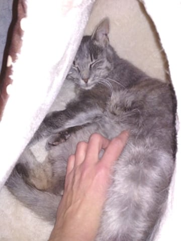 Zdravíme všechny do Sluníčka, Cecilka (Pupava),je úžasná kočičí dáma.po příjezdu do nového domova se zabydlela v pelíšku v koupelně a napapala se,na obchůzku vyrazila až druhý den,ale od první chvíle vrněla a užívala si drbání (nejlépe na bříšku).nejraději chodí na průzkum v noci a vyžaduje drbání a dnes si dokonce lehla i do postele a spinkala s námi.je to úžasná kočka která bude určitě jednou obrovský mazel.moc za ní děkujeme a určitě se brzy ozveme