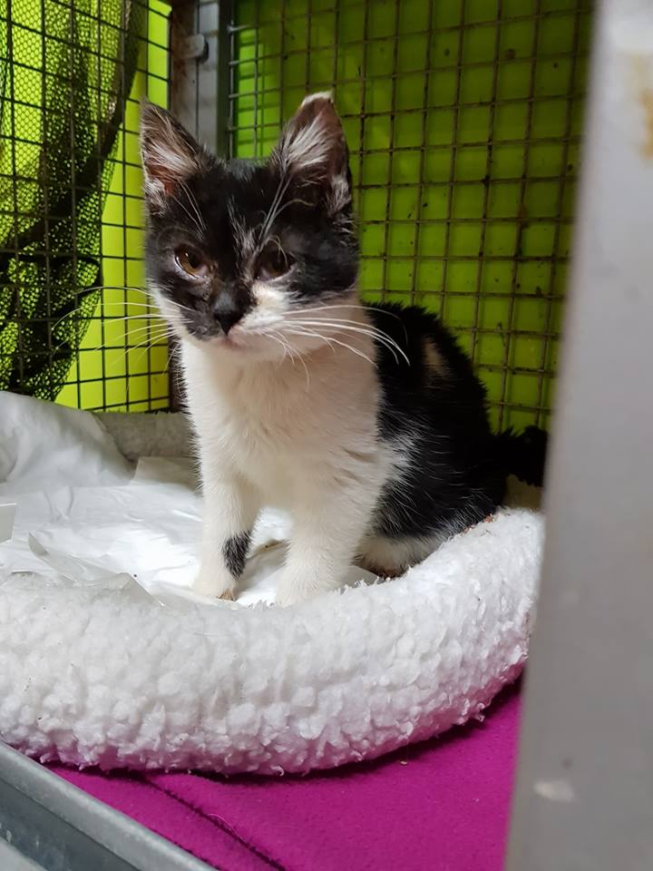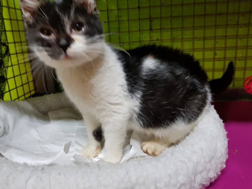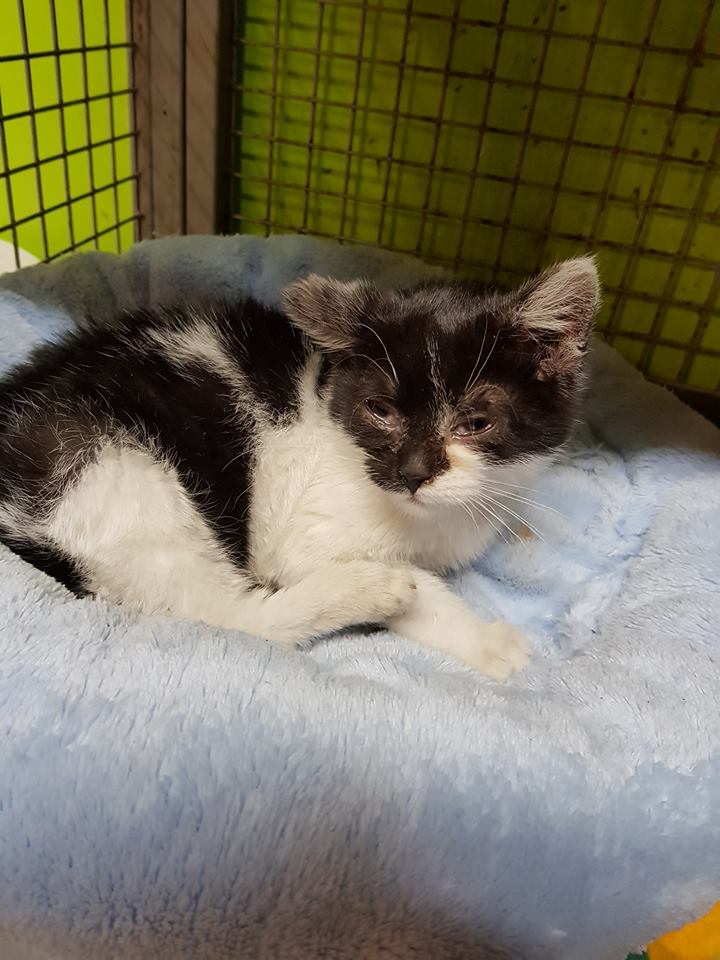 Černobílý kocourek nalezený v obci Křešice, který se z objevil u jednoho domu, hladový a nemocné. Dostal jméno Česílko. Je hodně nemocný. Zužuje ho rýma, ušní svrab, veliký průjem s krví a poraněným, krvavým konečníkem. Má ohromný apetit k jídlu. Od malička zřejmě trpěl hladem a nyní se nemůže dojíst. Česílko je moc milý a mazlivý kocourek.
