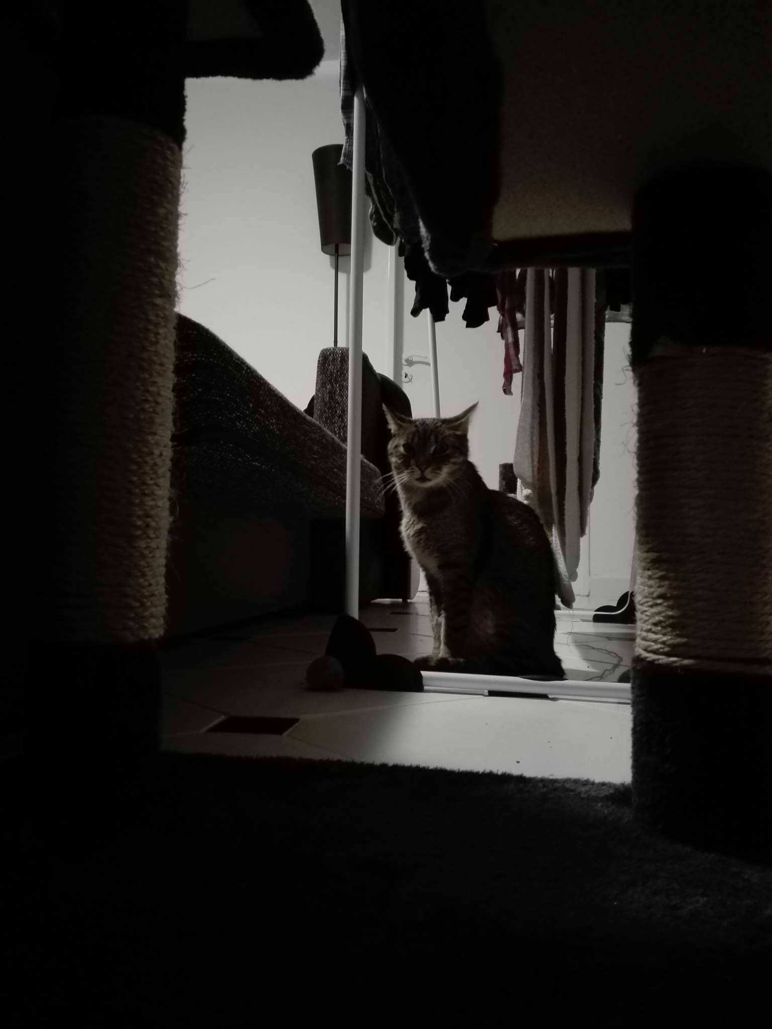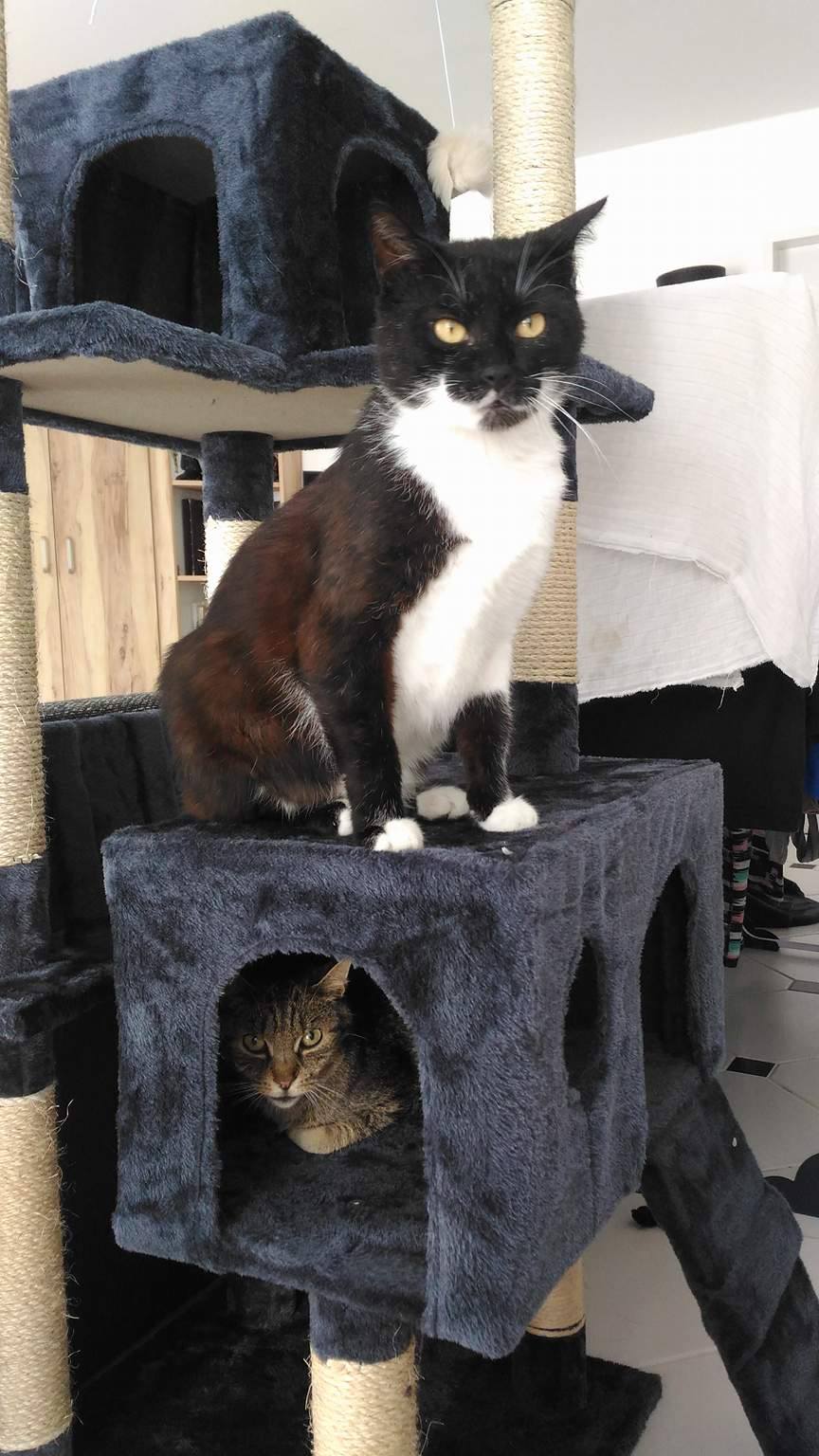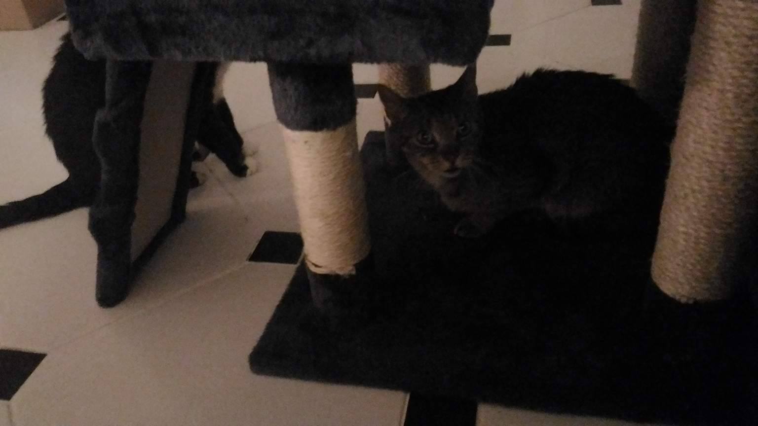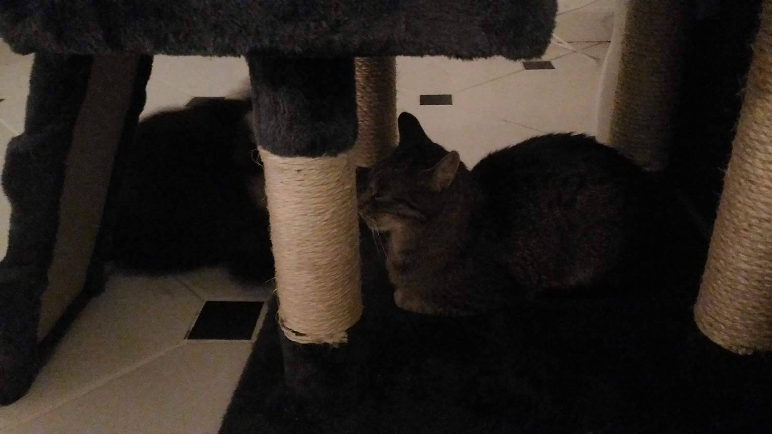 určitě čekáte na zprávy o Charliem, dali jsme mu chvíli na aklimatizování než napíšeme jak to vypadá. Začnu tím, že Chroustík ho přijal v pohodě ale ukázal mu, že on tu bude šéfem. Charlie, stejně jako byl u Vás je vystrašený, musíme říct, že víc než jsme čekali. Ze začátku zalezl pod postel stejně jako první dny Chroustík ale s tím jsme počítali. Jen v noci když je ticho a klid se stává aktivní a vyleze ven, slyšíme jak šel jíst nebo jak hrabe na záchodě. Každopádně ne všechny naše zprávy jsou pozitivní a Charlie tím jak se bojí tak se nám úspěšně vykadil vedle postele a vyčůral do peřin. Nevzdali jsme to hned a pouštěli ho do ložnice dál, protože víme, že to děla jen proto, že se bojí vyjít ven. Nicméně po dalším incidentu kdy se vykadil přímo pod postel a čekalo nás malé stěhování protože jsme tak daleko samozřejmě nedosáhli, tak má zákaz. Bohužel se ani nemyje což také není dobré znamení. Chroustík se o něj na jednu stranu stará, i ho někdy myje a dodává mu odvahu ale na druhou si s ním chce hrát a Charlie to úplně nechápe a jen se chce schovat. Nelitujeme ani trošku že ho máme, jen to s ním bude dlouhá cesta a doufáme, že nakonec úspěšná. Když se chce mazlit tak mručí a slintá a to je super pocit, bohužel těch chvílí je zatím hrozně málo. Na závěr posílám pár fotek, z některých je ten vystrašený výraz vidět až moc dobře. Fotek je tak málo a některé nejsou ani kvalitní protože se snažíme věnovat hlavně jemu když už příjde a navíc než člověk vezme telefon a nebo rozsvítí tak je fuč :D.