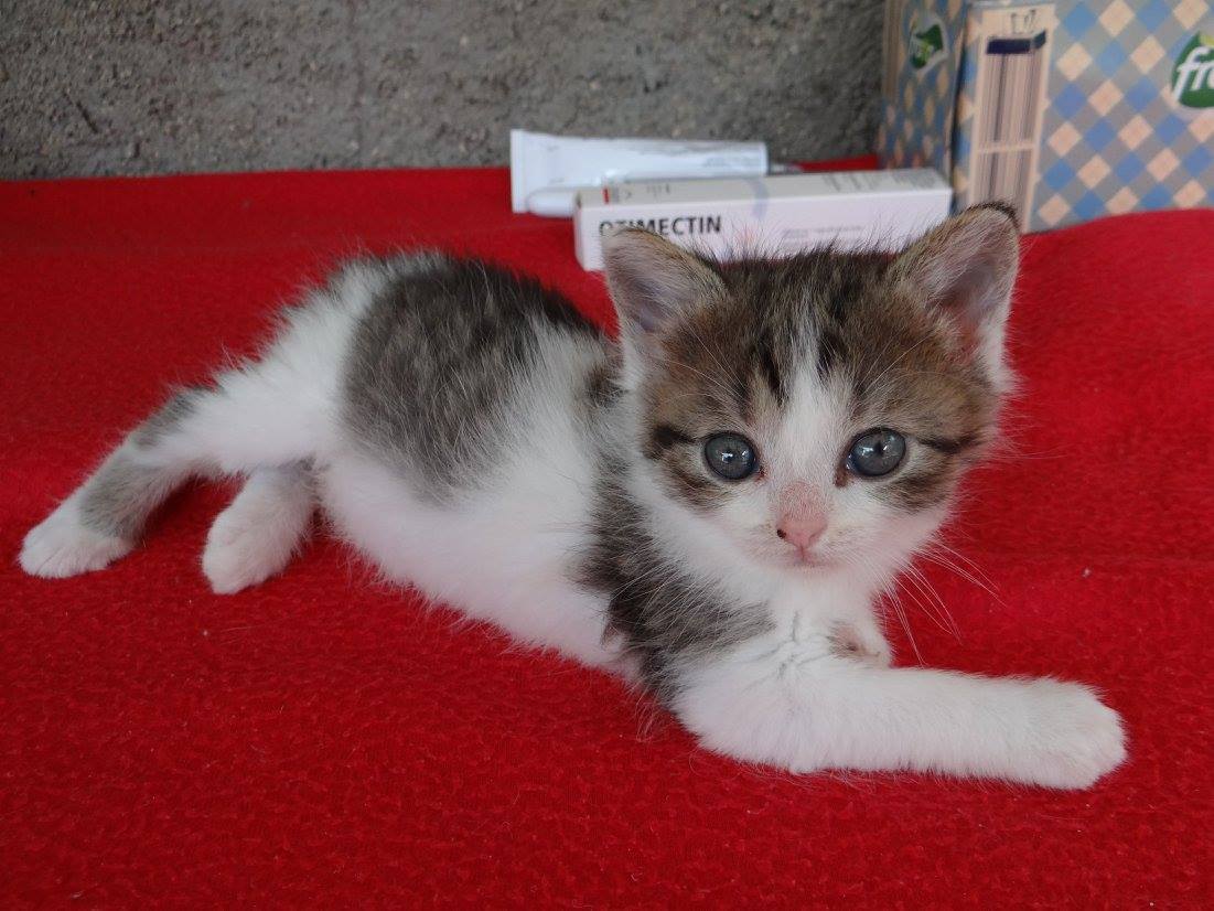 Bílomourovatá kočička, která byla přijata se svou maminkou Pipou a sourozenci Diankou, Kate a Williamem ze vsi Ředhošť. Koťátka byla odsouzena k smrti, nebyl o ně zájem, pouze jedno koťátko mělo mít novou rodinu. Zachránila je jedna kočkomilka, které se nakonec podařilo dostat od majitele i kočičku se čtvrtým koťátkem. Koťátka však onemocněla, bezvládně ležela a třásla se a tak se obrátila na Sluníčko s prosbou o pomoc. Po příchodu k nám jsem viděla, že koťátka mají horečku, což skutečně tak bylo. Dále měli ouška plná svrabu a váhu od 340 do 430 gramů. Dostali proto antibiotika.
