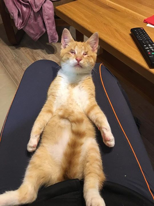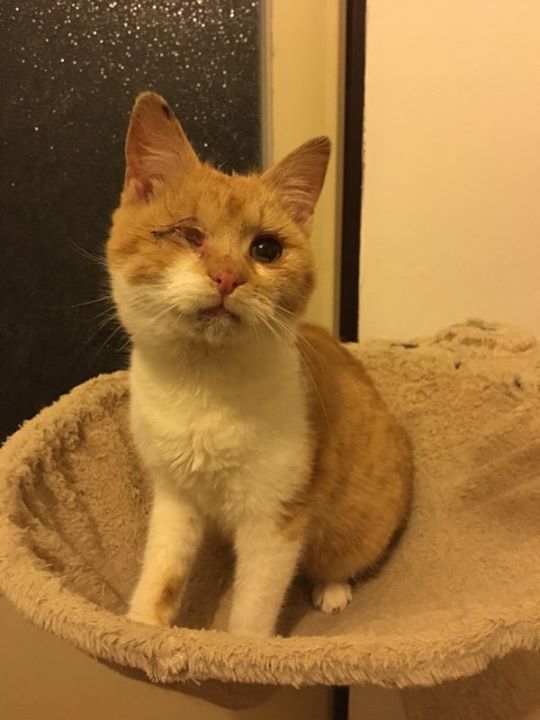 Přijali jsme další kočičku z lokality, odkud je Sluníčkový zcela slepý kocourek Luciánek. Jedná se o kočičku bez jednoho očička, opět zasažené neléčenou rýmou. Kočička dostala jméno Viktorie a mezi svátky jde s očičkem na operaci, respektive jí bude dolík po očičku zašit. Viktorie je krásné bílorezavé kotě, které je v depozitu u Ivany právě s kocourkem Luciánkem a Rondíkem. Rondík ulehčuje život zcela slepému rezavému Luciánkovi, jsou to nerozluční kamarádi.