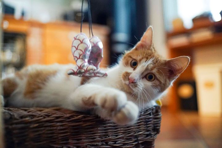Za těch pár dní nám pěkně rozkvetl, tedy, je to pěkné kvítko. Submisivní kocourek, jak se psalo v popisku, je asi tak deset minut denně, zbytek dne je šelma a my jsme jeho kořist, hlavně kotníky a ruce. Ráda se mu věnuju, ale jak je ještě takové dítě, tak neví, kdy přestat, a tak jsme rukám ala hračkám udělali přítrž a učíme ho, že to bolí a že k tomu jsou hračky (nejspíš by pomohl kočičí kamarád, no jóóó). Když se ale mazlí, je to velmi intenzivní, dostane se všude, i do uší. 😀 Je tak roztomilý, že pomalu začíná padat zákaz lezení do postele, který vznikl kvůli naší lehké alergii. Tak jsme raději nakoupili prášky a jen lamentujeme nad tím, jak je v peřinách rozkošný.