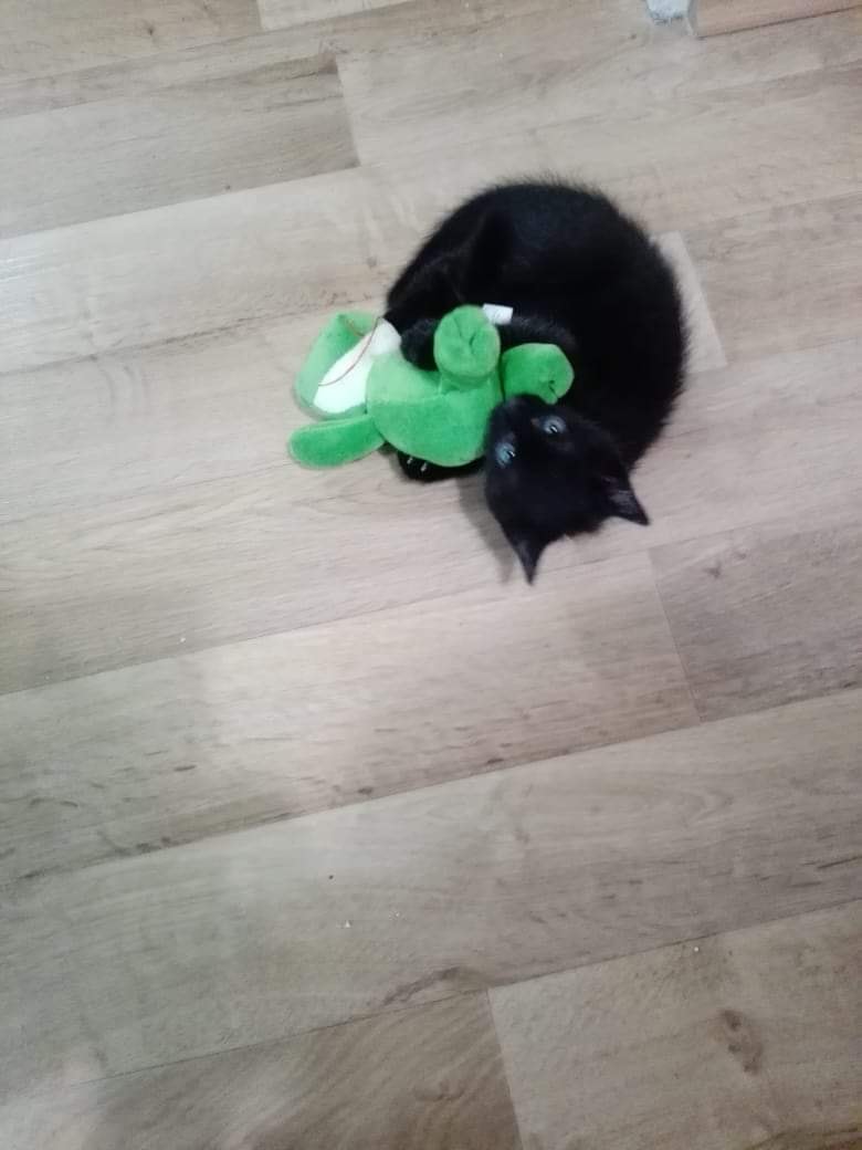 ▪️Čmoudík Ritchie se u nás už zabydlel, krásně jí, se zachůdky nemá problém. Dnes dostal dvě škrábadla (menší do obýváku a větší k Amálce, kde je přes noc a ve dne, když jsme pryč), obě hned vyzkoušel. Taky má nového kamaráda žabáka, tomu dávám tak dva dny života 😂. S Šedíkem se pomalu seznamuje.