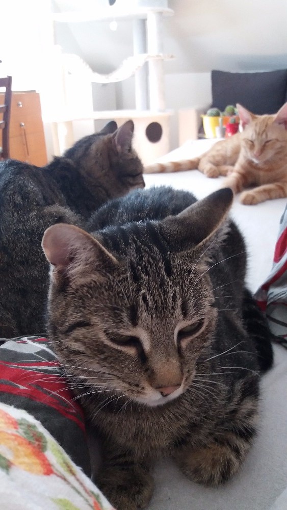 tak prý už jsem oficiálně jen Dadýnek, abych prý nebyl zmatený z dvou táborů doma, kde mi jeden říká Zrzečku a druhý Dadýnku. Dále mohu podotknout, že roli zlobiče domácnosti zvládám na výbornou. Mamince jsem do dnes přesadil už dvě kytky, ta kočičí tráva nestíhá z mé akčnosti dorůstat. Moje nejoblíbenější hračka jsou teď babičiny umělé kytky, ale hraji si jen s těmi žlutými. A když jsem u těch kytek, abych nezapomněl, chtěl jsem mamince pomoci a po zalití, než uklidila konvici jsem jí mokrou hlínou vyzdobil zeď. Jak se mi to povedlo bude pro všechny mým tajemstvím, ale šlo to hadříkem sundat. No a abych nezlobil jen mamku, tak i s taťkou jsem si našel parádní hru. On si se mnou ze spaní totiž hraje a já ho tak rád kousám do palce u nohy. A abych neříkal jen o zlobení, musím podotknout, že jsem se odvážil od minulého týdne už zkoumat další patro domu. Už si na mě zvyká i kočička Šmoulinka, kamkoliv se hnu mě kontroluje a nechá mě kolem sebe projít. Za to Mourek to už je můj veliký kamarád, válíme se v posteli, zlobíme Šmoulinku, honíme se a dovádíme. Jsem prý pěkné číslo, ale díky mým mazlícím a vrnícím schopnostem se na mě nikdo nezlobí.
