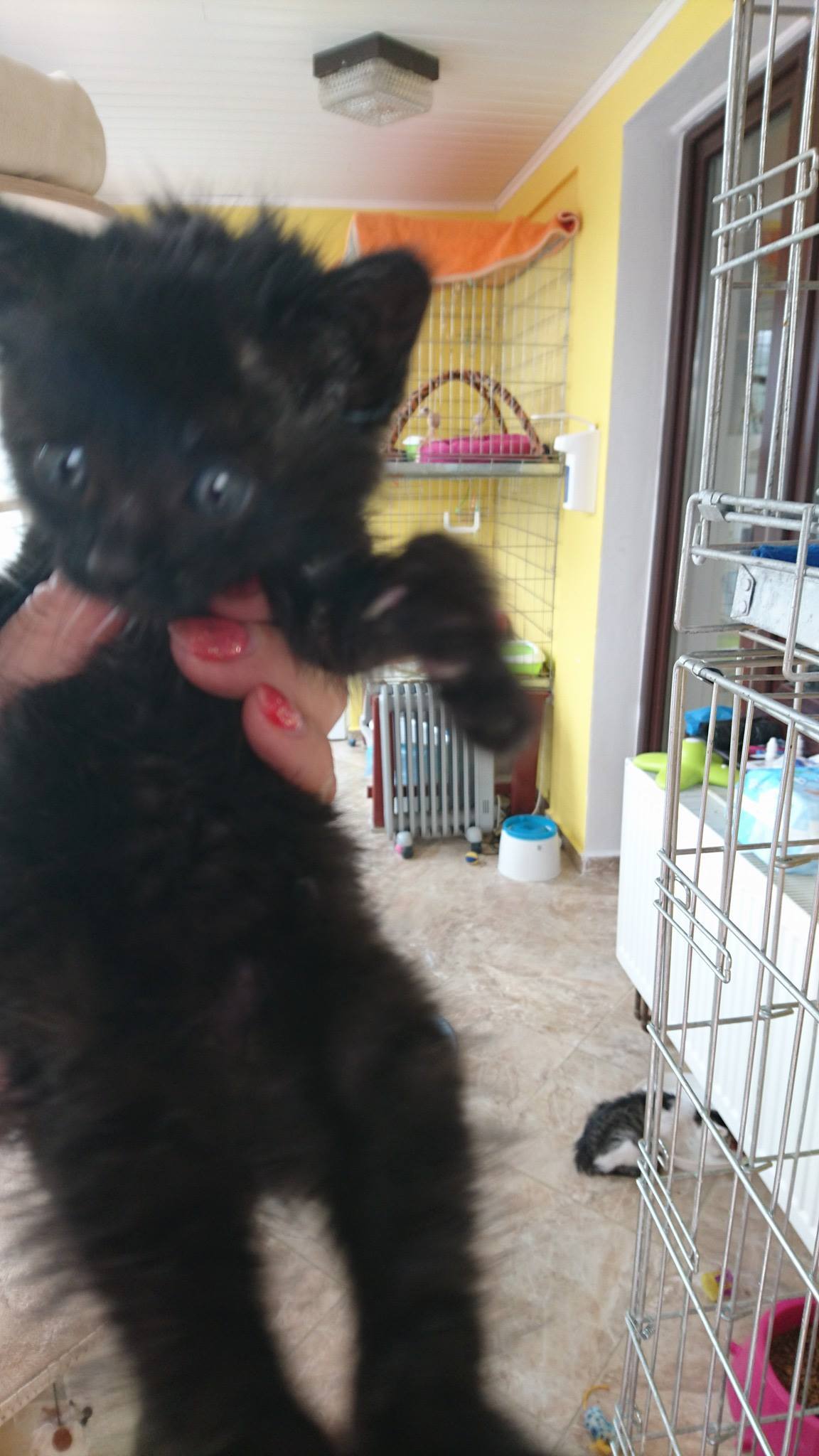 Další mrňavý nalezeneček, kocourek Vetík. Jsou mu asi tak necelé čtyři týdny. Chybí mu maminka. Zkoušime lahvičku, ale ta se mu nelíbí. Zobne si trošku konzervičky a lízal i mlíčko. Je hubeňoučký. Loupe se mu kůže, i když byl na veterině vyšetřen, nepřišli na to. Takže pojedeme k panu doktorovi.