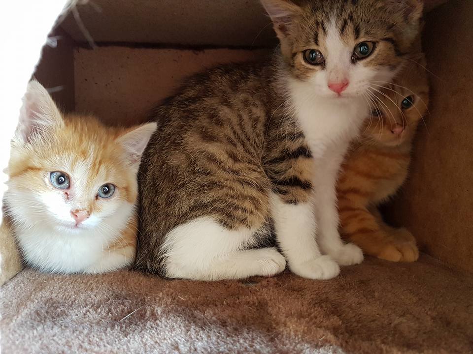 Bílorezavá Kapička, rezavý Deštíček a bílomourovatý Mráček. Nová koťátka v depozitu u Marušky.