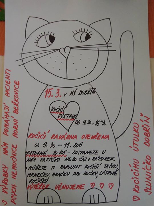A tak vás zase po roce zveme na kočičí výstavu a do kočičí kavárny, výtěžek věnujeme kočičímu domovu Sluníčko