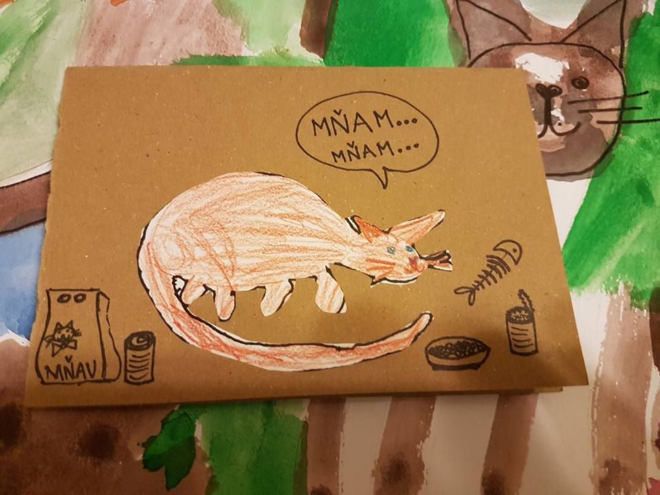 Děti ze 3C a 4C Základní školy Výmolova z Radlic pro nás namalovaly tyto úžasné obrázky s kočičí tématikou. Vyvěsíme je u nás ve Sluníčku. Také pro naše kočičky nasbíraly potřebné věci k chodu útulku, hromadu dobrot a pamlsků. Moc všem děkujeme.