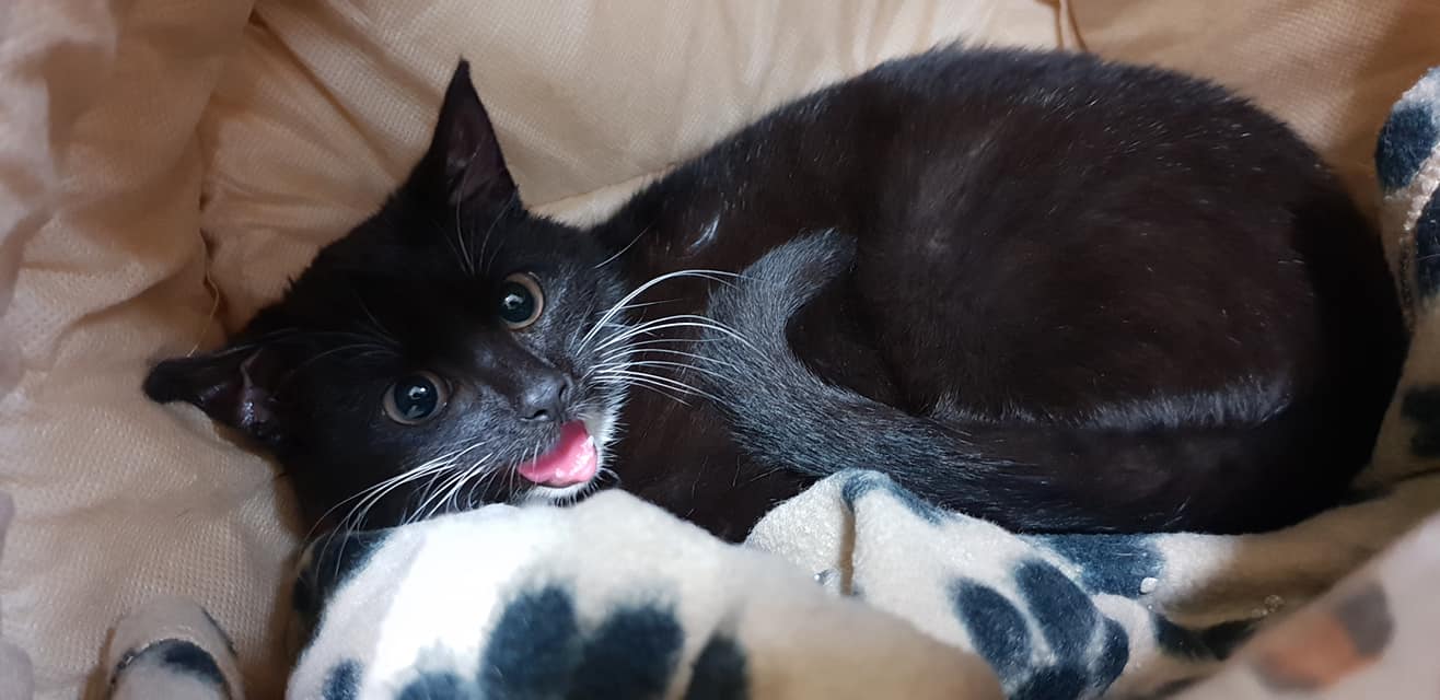NĚKDO SE JICH ZBAVIL V OBCI LOUNKY. MAMINCE UŽ PANÍ DOMOV NAŠLA, KOŤÁTKA BYLA NAD JEJÍ SÍLY A PO TE, CO JE TROCHU SOCIALIZOVALA A U NÁS SE UVOLNILO MÍSTO, PUTOVALA K NÁM.