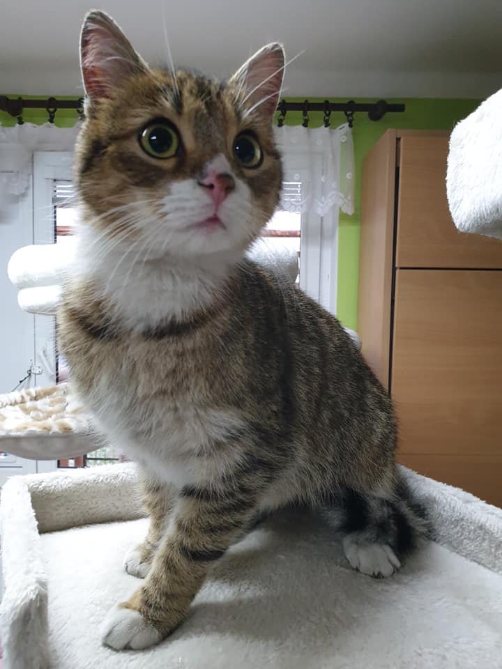 Je to úžasná, malá, cca šestiměsíční slečna. Mazlivá. Z tolika kočiček u nás značně vystresovaná. Bohužel bez čipu.