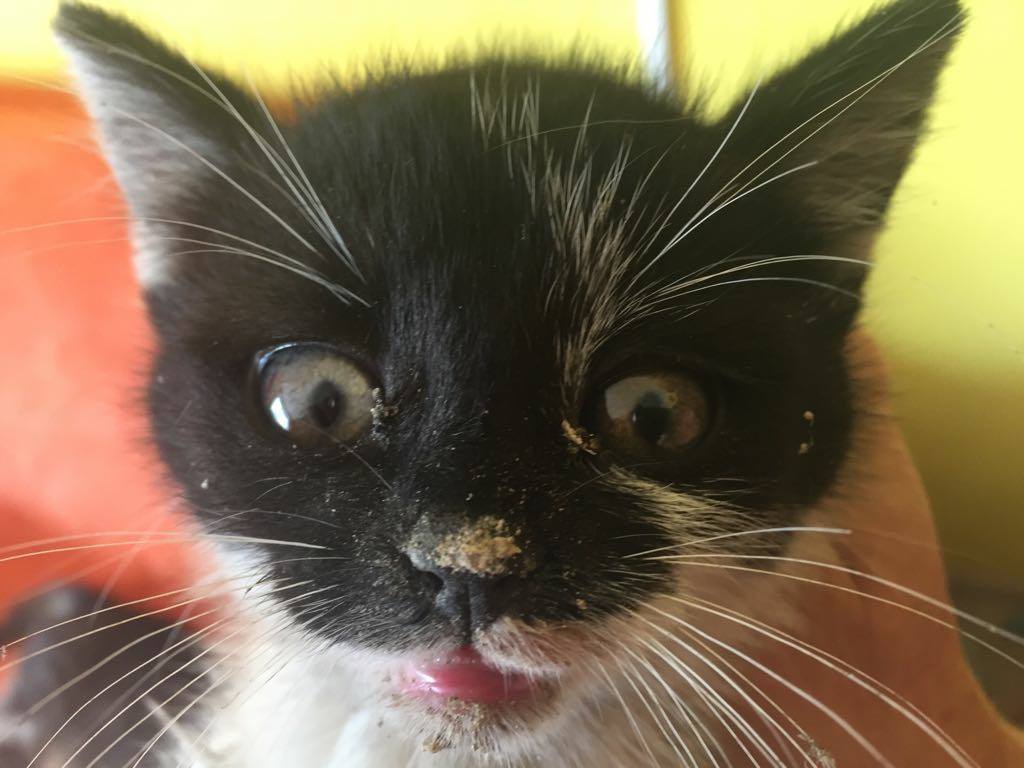 Dneska jsme s kamarádkou Věrkou natrápily s odchytem tohoto křičícího mrněte, které se schovalo v odvětrávací rouře v domě samoobsluhy Pewa na náměstí v Roudnici n.L. Již druhý den se ho zástupci ochodu snažili odchytit, ale nedařilo se. Maličký byl vystresovaný, zoufalý, špinavý, ale jaké to bylo štěstí, když se ho podařilo vyndat. Je to chlapeček, necelé dva měsíce starý a dostal jméno Pewík.