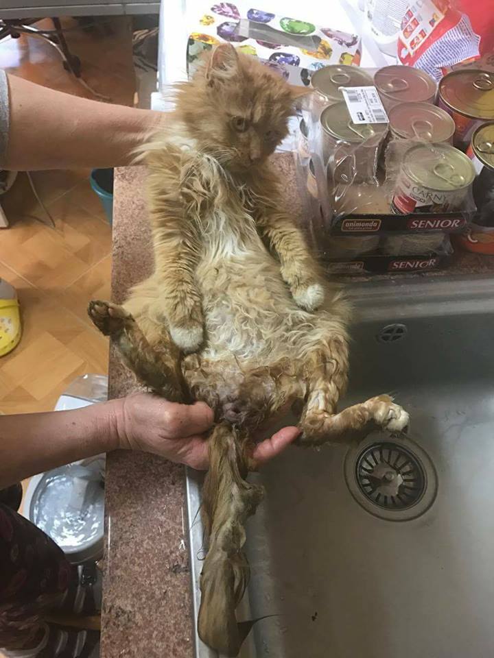 Dneska odpoledne jsme přijali zraněnou rezavou dlouhosrstou asi roční kočičku