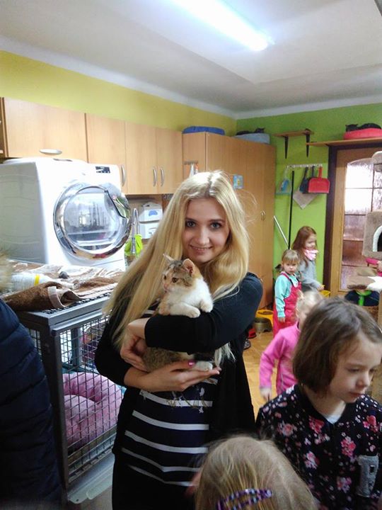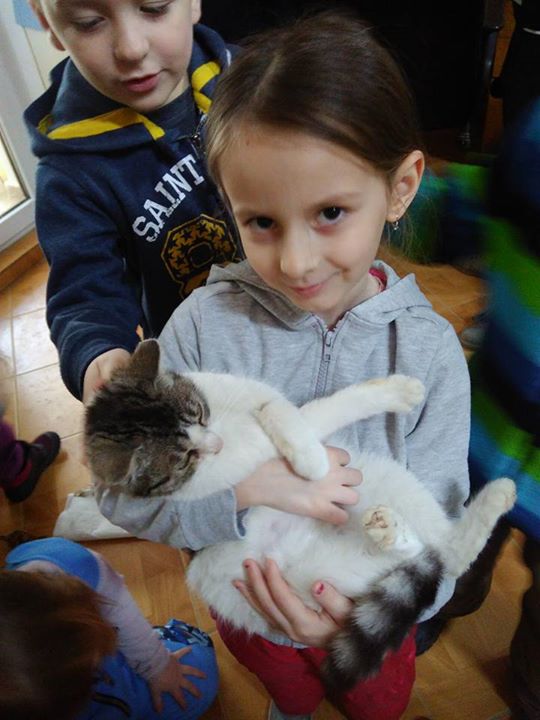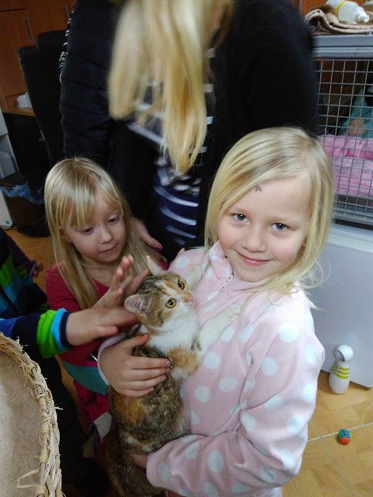 Dnešní návštěva v Kočičím domově Sluníčko,děti kočičkám přinesli granule konzervy a peníze z Kočičí výstavy