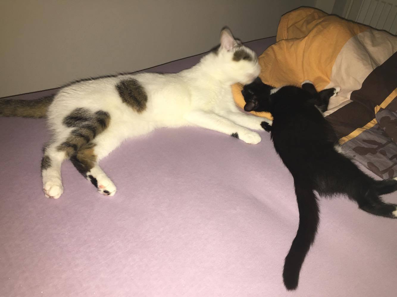 Dobry den, tak už máme Dolfinku více jak měsíc doma a je to radost. Je to malý lumpík a torpédo. Každý den se honí se starší kočkou po bytě a vypadá to, jako kdyby behaly závody 😀 ráno si přijde lehnout nad hlavu a potulit se, jinak spí u noh se starší kočkou nebo na zemi. Přes den si rada hraje, jí ( ta by sezrala snad všechno ) ale dáváme ji převážně granule a konzervy, moc rada se tuli a vrni. Odcervovaci tabletku jsme zvládli úplně v pohodě dat. Posílíme pozdrav do Sluníčka.