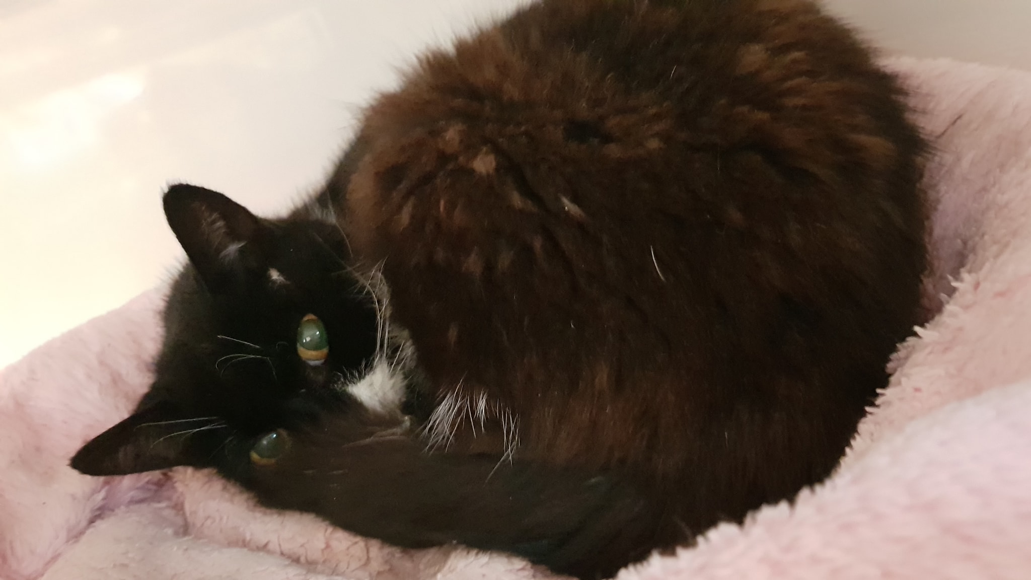 ◾️Dlouhodobě hladovění a žíznění vykonaly své, má trvale poškozené ledviny a stále ji chybí svalová hmota. Nechce se jí běhat, pořád jen polehává a jídlu též moc nedá. Dietu nechce vůbec, jsme rádi, pokud si zobne čehokoliv jiného.
