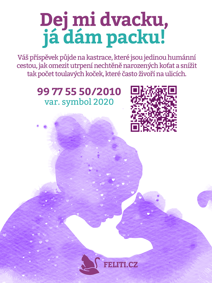 🔸Pokud projekt Feliti chcete podpořit, pošlete 20 Kč na účet 99775550/2010 VS 2020.