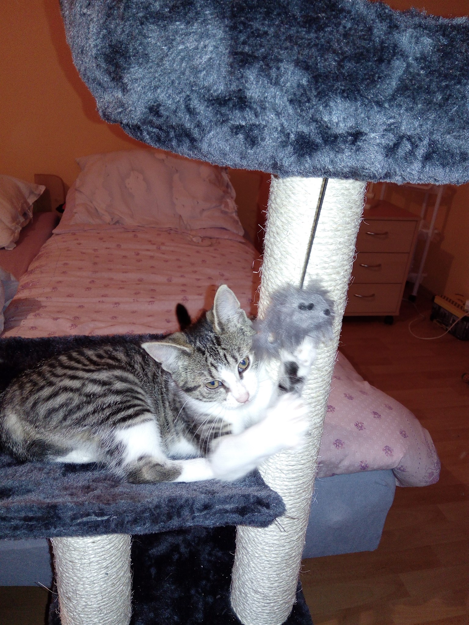 Dobrý den, po delší odmlce zase posílám pár fotek našich holek 😊 Elvírka i Sofí se mají moc fajn, holky hezky baští. Elvírka váží už 3kg je to kus slečny a Sofí má 1,8kg. Dostaly od nás škrabadlo a velmi si ho oblíbily 😊 Posíláme všem kočičkám pozdravy a hlavně držíme pěsti ať se z toho všeho konečně dostanou a mají hezký domov 😊